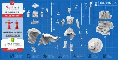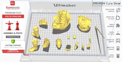 - The assembly parts in the FFF/FDM version come in the recommended print orientations for easy bed placement;