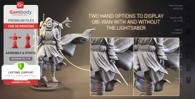 - STL files of high-poly Obi-Wan Kenobi model for 3D printing consist of 91 files;