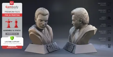 To have a piece reminiscent of Obi-Wan as he appeared in the Star Wars: Episode I – The Phantom Menace, our contributing 3D artist sculpted the Obi-Wan Kenobi Bust 3D Printing Figurine. The figurine captures the youngling's lively expression as if he is challenging his Master with a witty remark. The man is dressed in his trademark Jedi robe, while the Padawan braid serves as a vivid reminder of his rank. What a perfect piece for the collection of an aspiring Jedi!