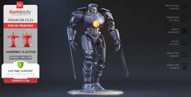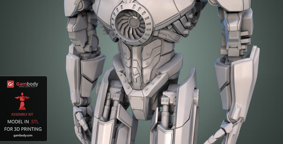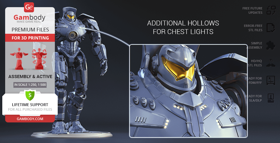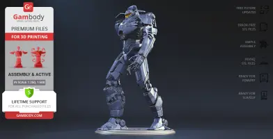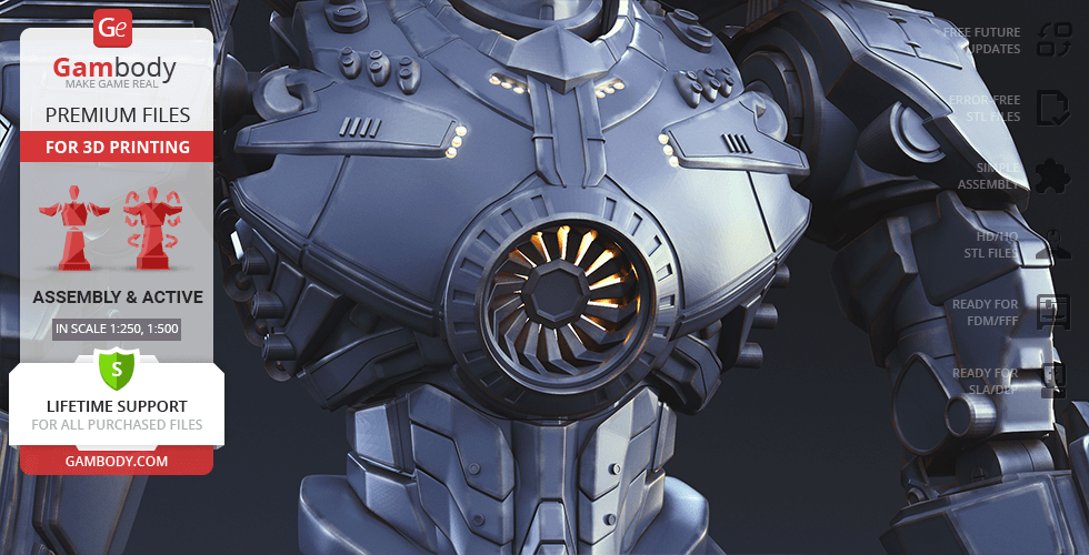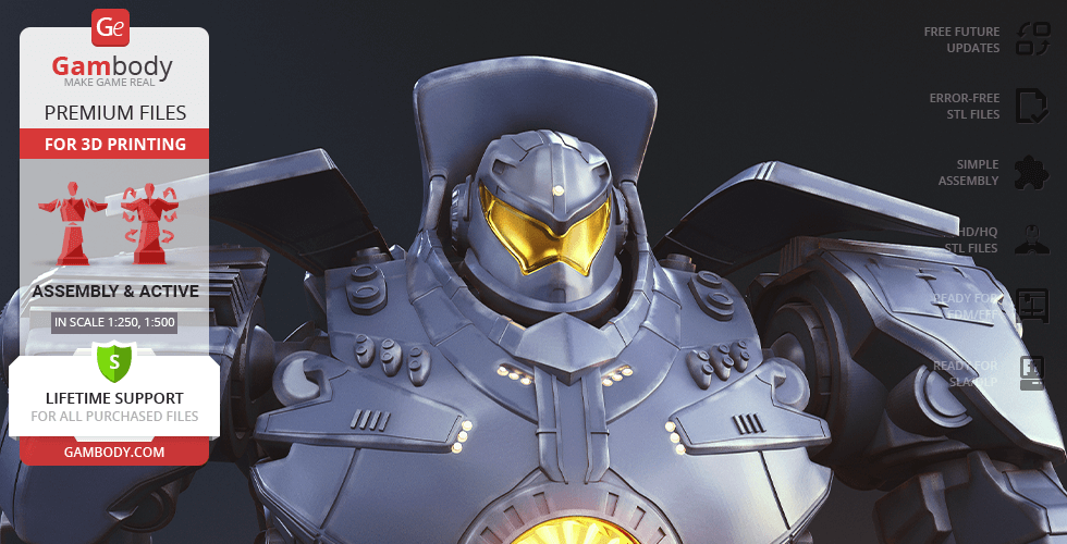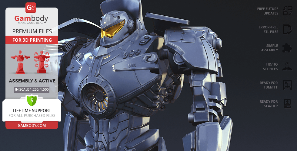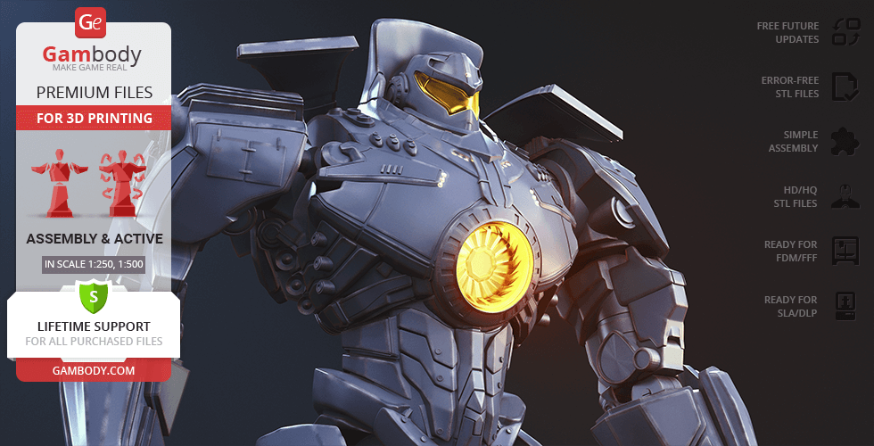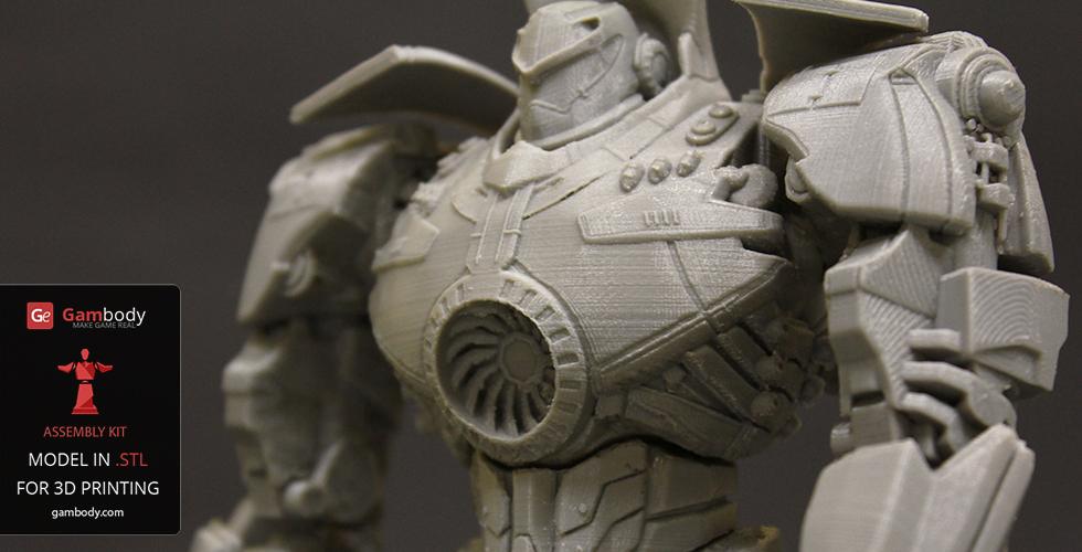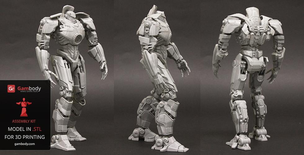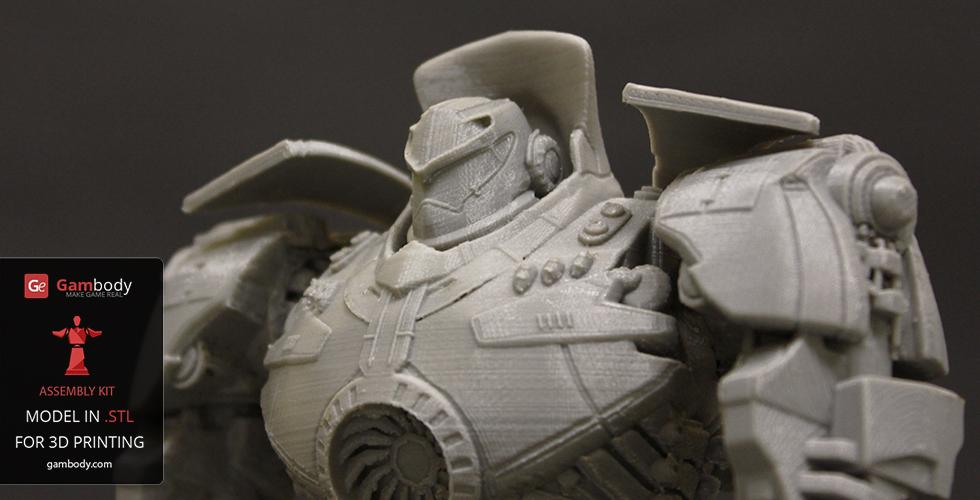 Gipsy Danger for 3D printing is a fully active assembly model and its moderation and adaptation for different types of 3D printers took the Gambody team 51 hours in total.