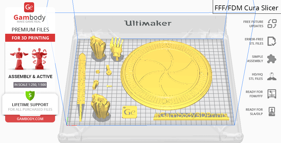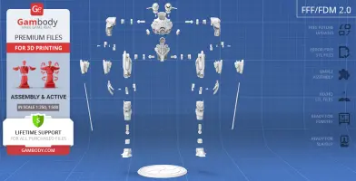 For you to receive the cleanest 3D printing result possible, minimize the amount of filament needed for generated support, and make use of the active elements designed by Gambody Engineers, the Jaeger was divided into convenient assembly parts.