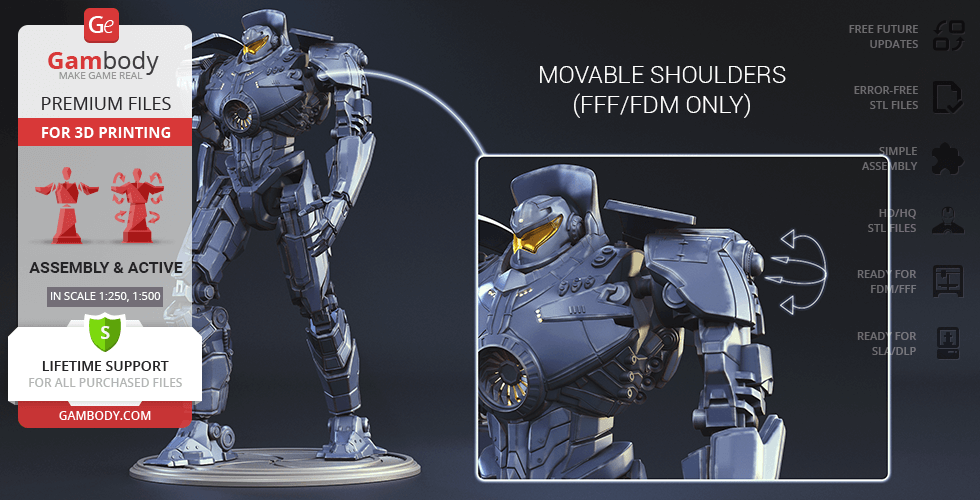- 4 versions of Pacific Rim Gipsy Danger STL files for FFF/FDM and DLP/SLA - files for all versions are available for download after the purchase;