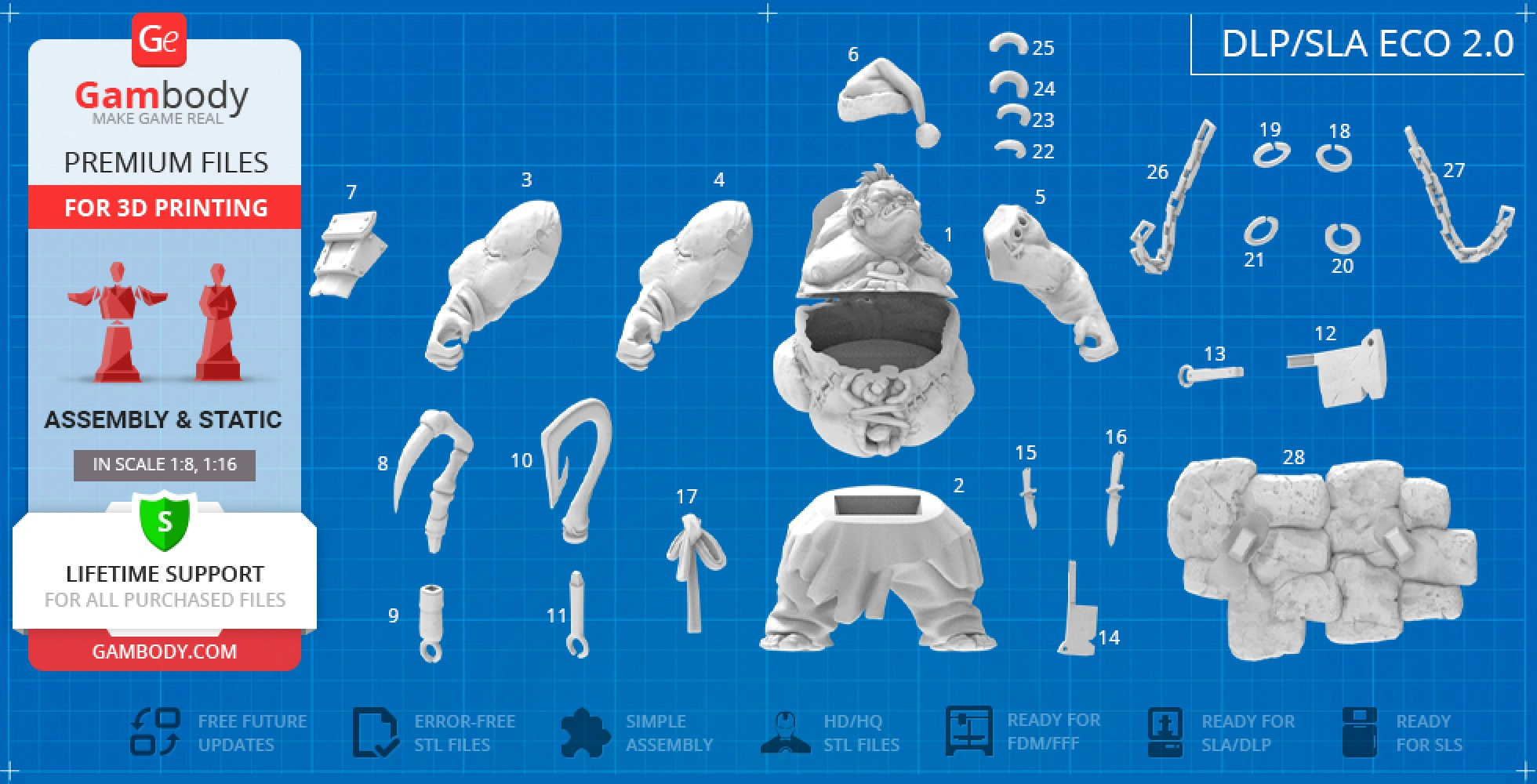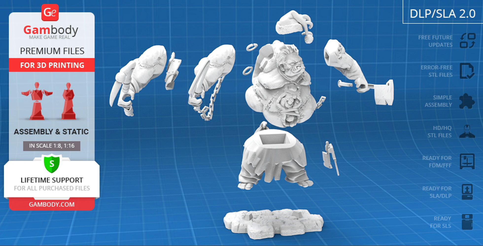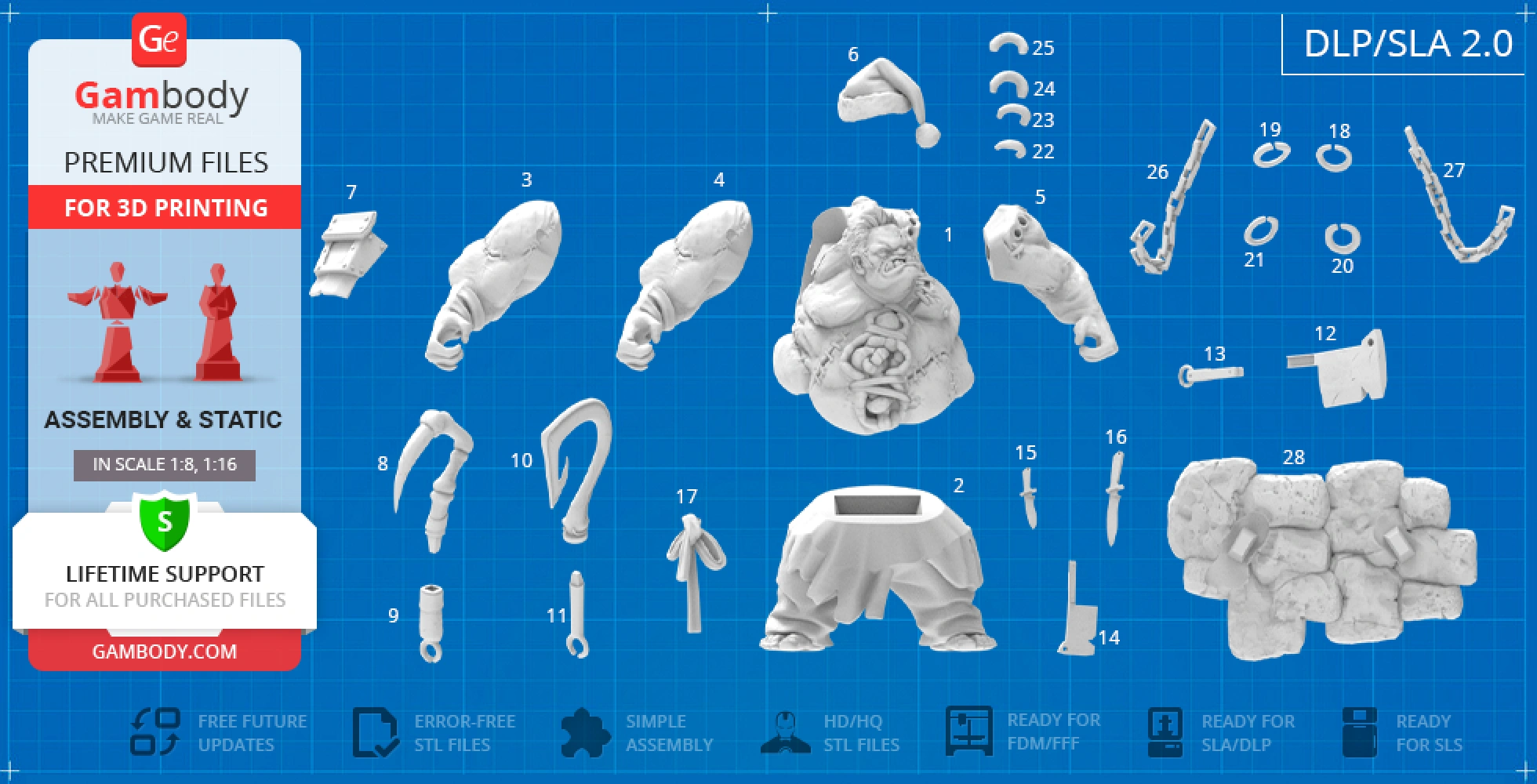 - STL files of high-poly Pudge model for 3D printing consist of 96 files;