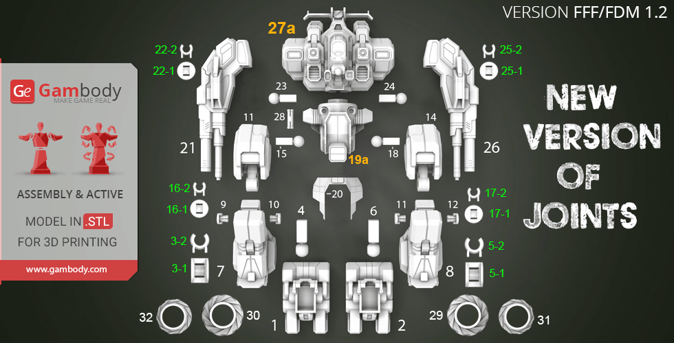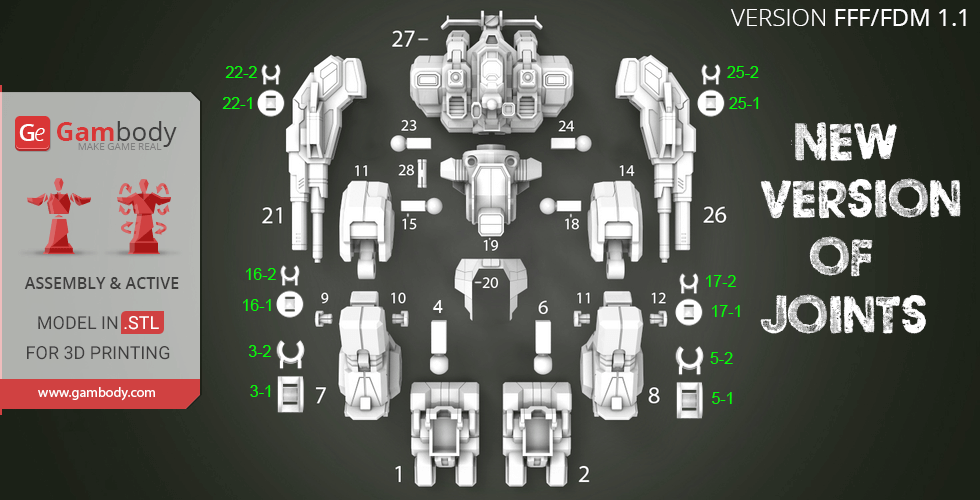 To use new joints, you do not need to reprint the whole model of your Mech!