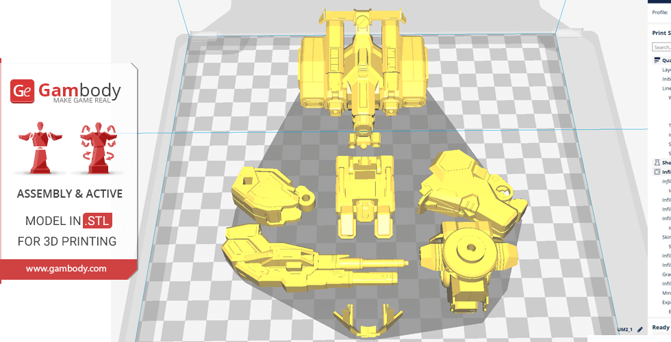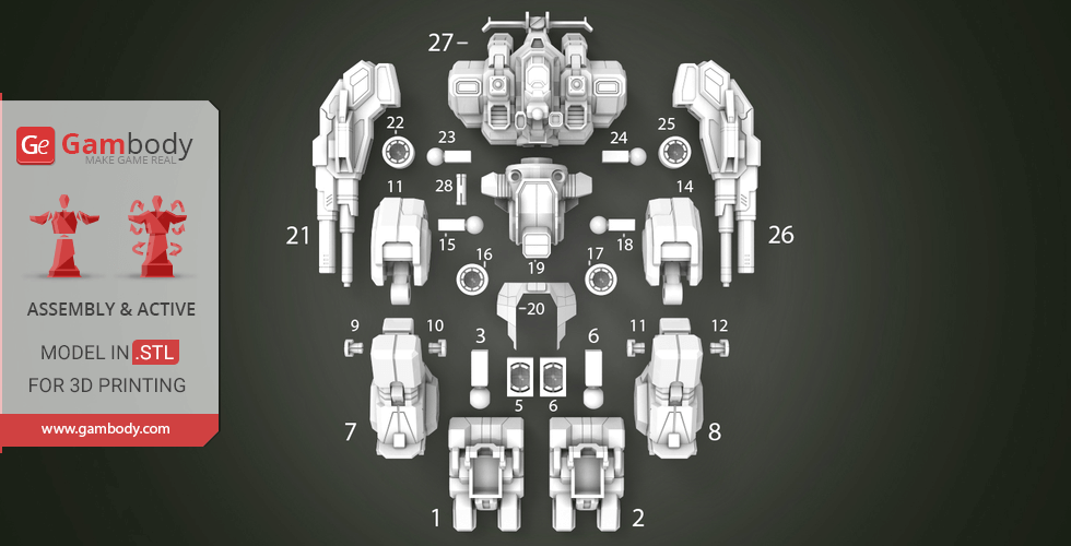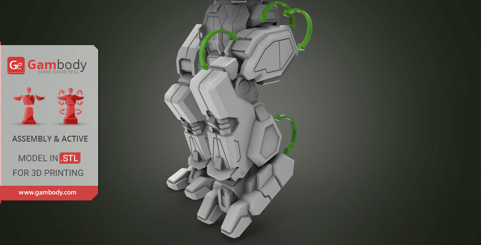 In the FDM version, moving elements such as joints, legs, arms, body and weapons are developed and improved! They are different from those used in the game and therefore the 3D printing model has become more movable.