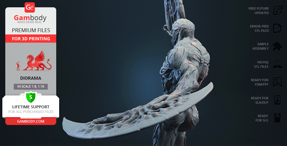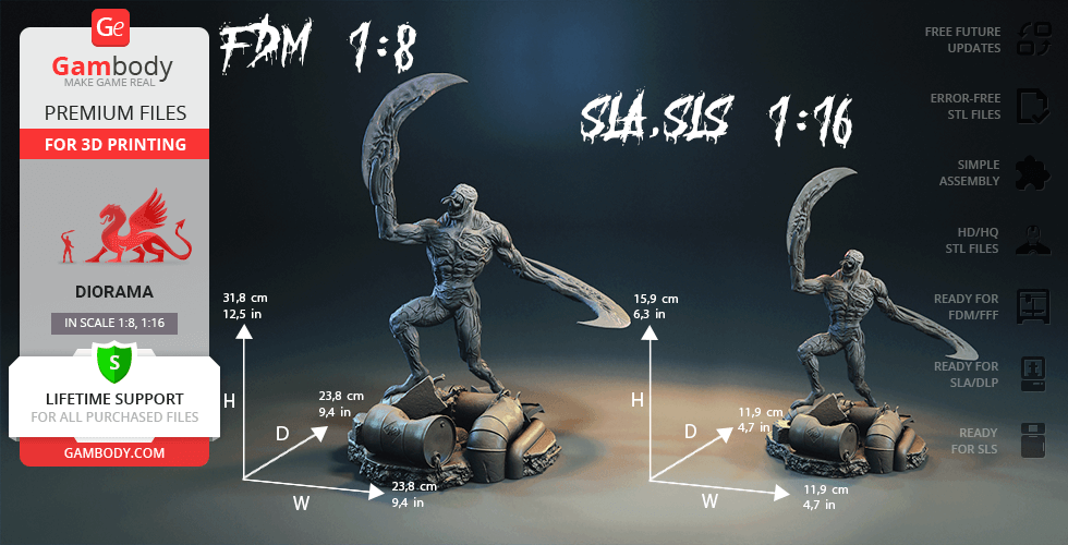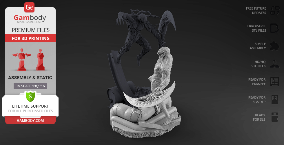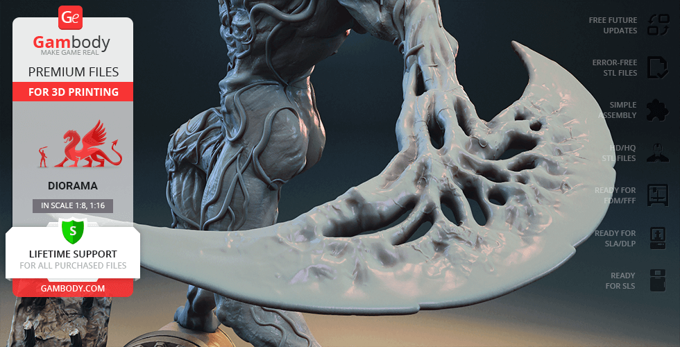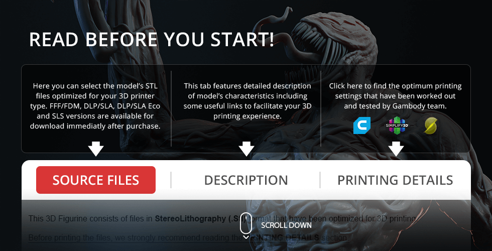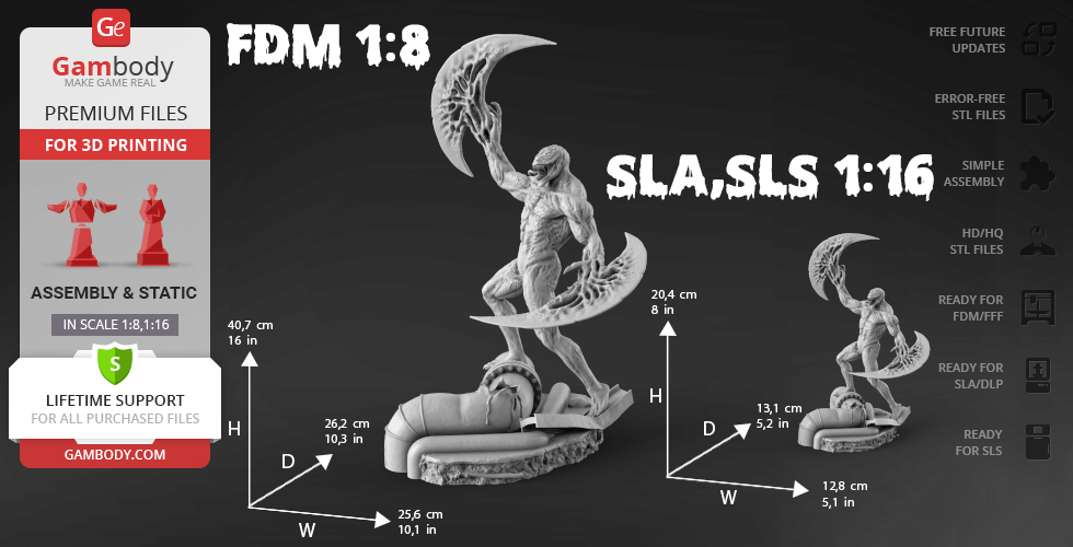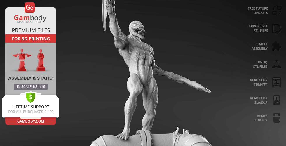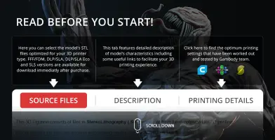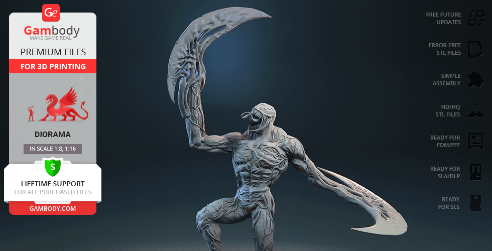 - The model is available in recommended scales of 1:8 for the FFF/FDM version and 1:16 for the DLP/SLA/SLS versions, based on approximate height of Venom (1920 mm).