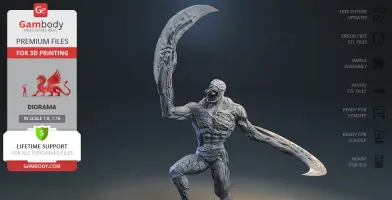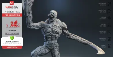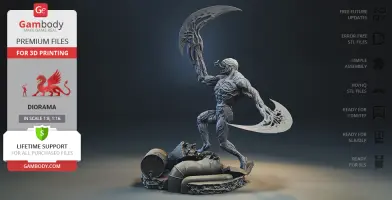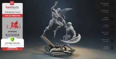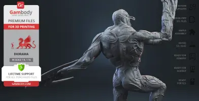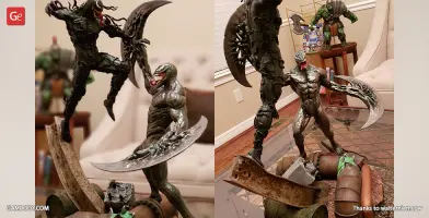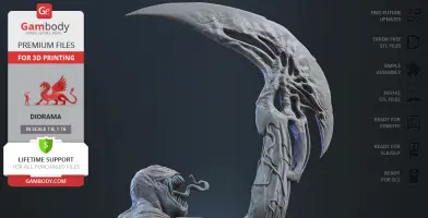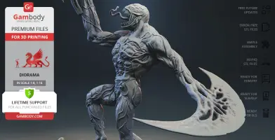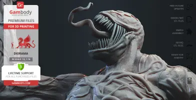 The 3D printing Venom vs Riot diorama depicts the dynamic battle scene that will most likely put an end to one of the opponents. Riot for 3D printing seems to have shapeshifted his hands into blades which make the alien parasite look even more lethal! The Riot 3D model comes with its own platform as well, so you may choose to show off either the creature within the diorama or on its own!