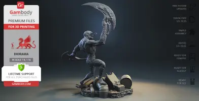 - STL files of high-poly Riot Symbiote in Diorama diorama model for 3D printing consist of 66 files;
