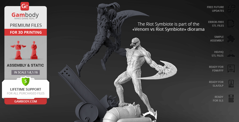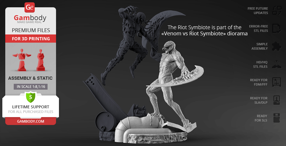 - Riot Symbiote is a part of “Venom vs Riot” diorama with Venom 3D print model;