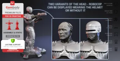 Watch the tutorial on how to assemble the 3D Printed RoboCop 1987 model from the provided 3D Print Files on Gambody YouTube channel.