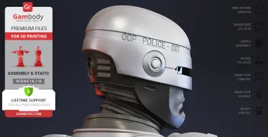 I love robocop,. alike most other prints from Gambody I upscale them and this was no different. 1:1 scale and file integrity held perfectly. The detail is epic but i also like both heads with and without helmet so I can change them at will whenever the feeling takes me. You wont be disappointed!