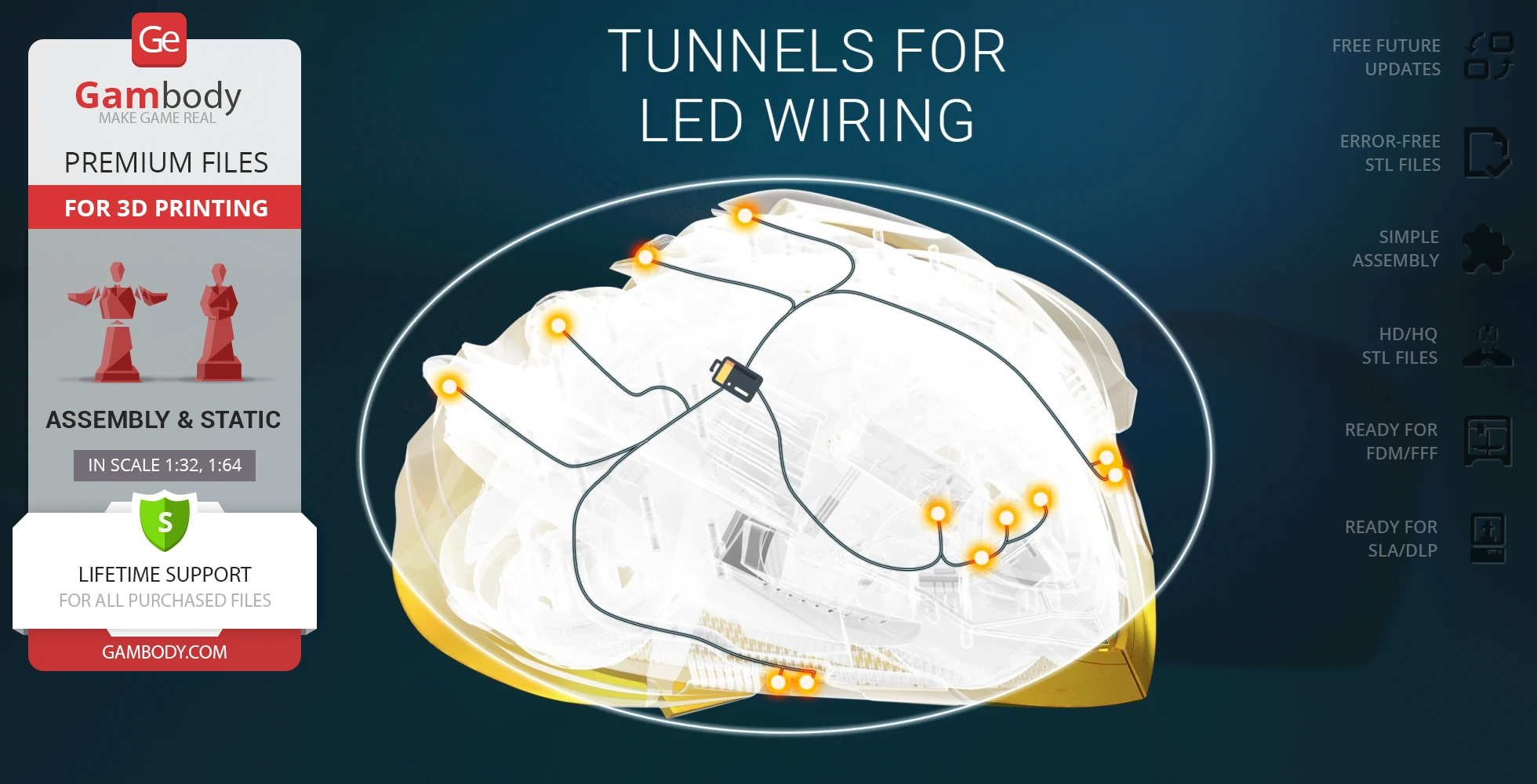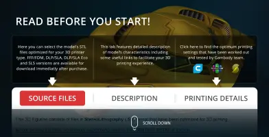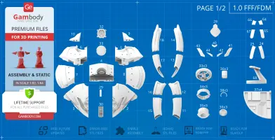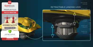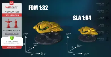 All assembly parts in the FFF/FDM 1.0 version are provided in STL files in recommended positions that were worked out in order to ensure the smoothness of the details’ surfaces after printing and that the 3D printing beginners won’t face difficulties when placing the parts on a build plate. When downloading any model’s file you will also receive “Assembly Manual” for FFF/FDM 1.0 and DLP/SLA 1.0 versions in PDF and video formats. We highly recommend that you get acquainted with the “Assembly Video” and “Assembly Manual” before getting down to the Samus's Gunship 3D printing model.