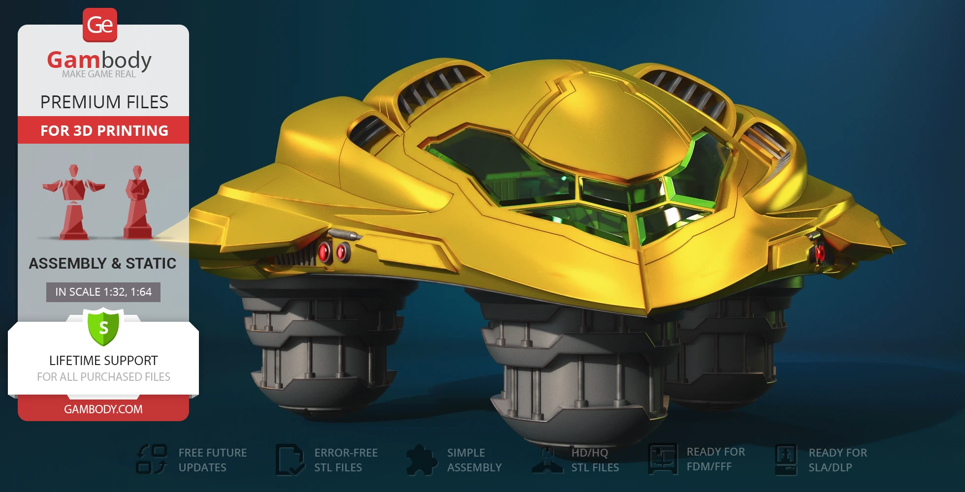 - 2 versions of Samus's Gunship STL files for FFF/FDM and DLP/SLA - files for all versions are available for download after the purchase;