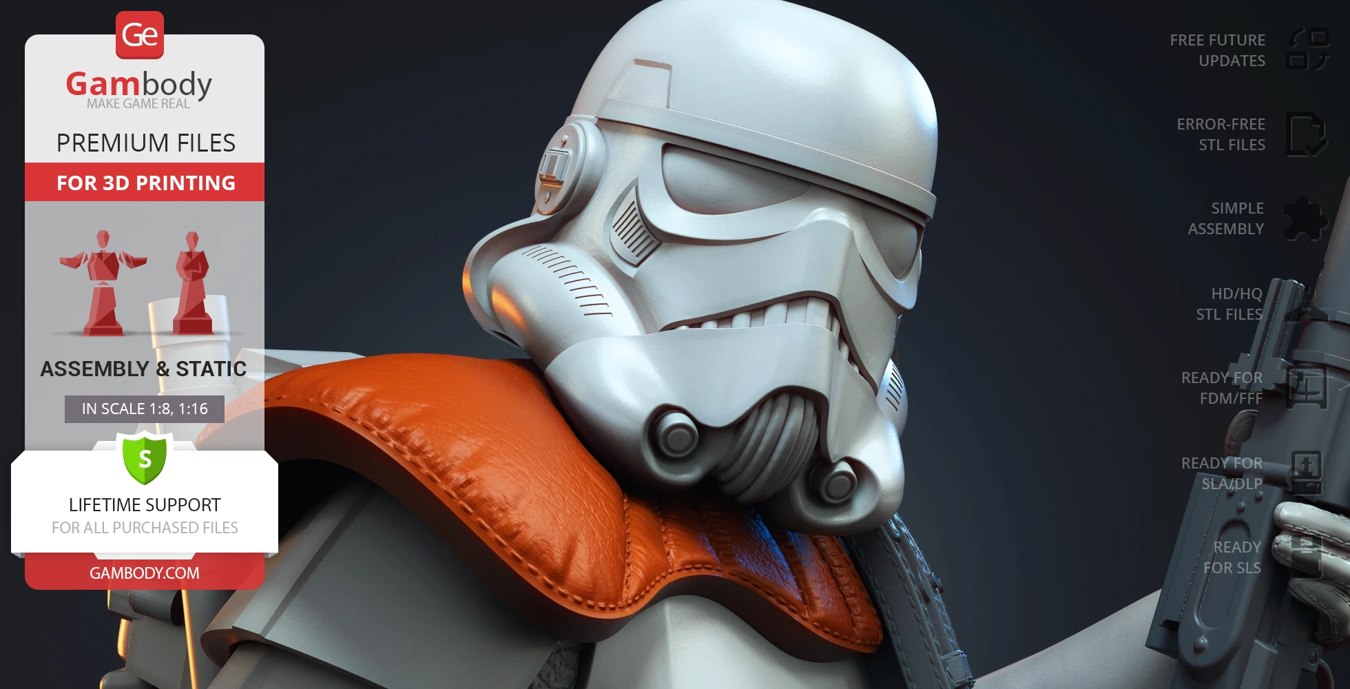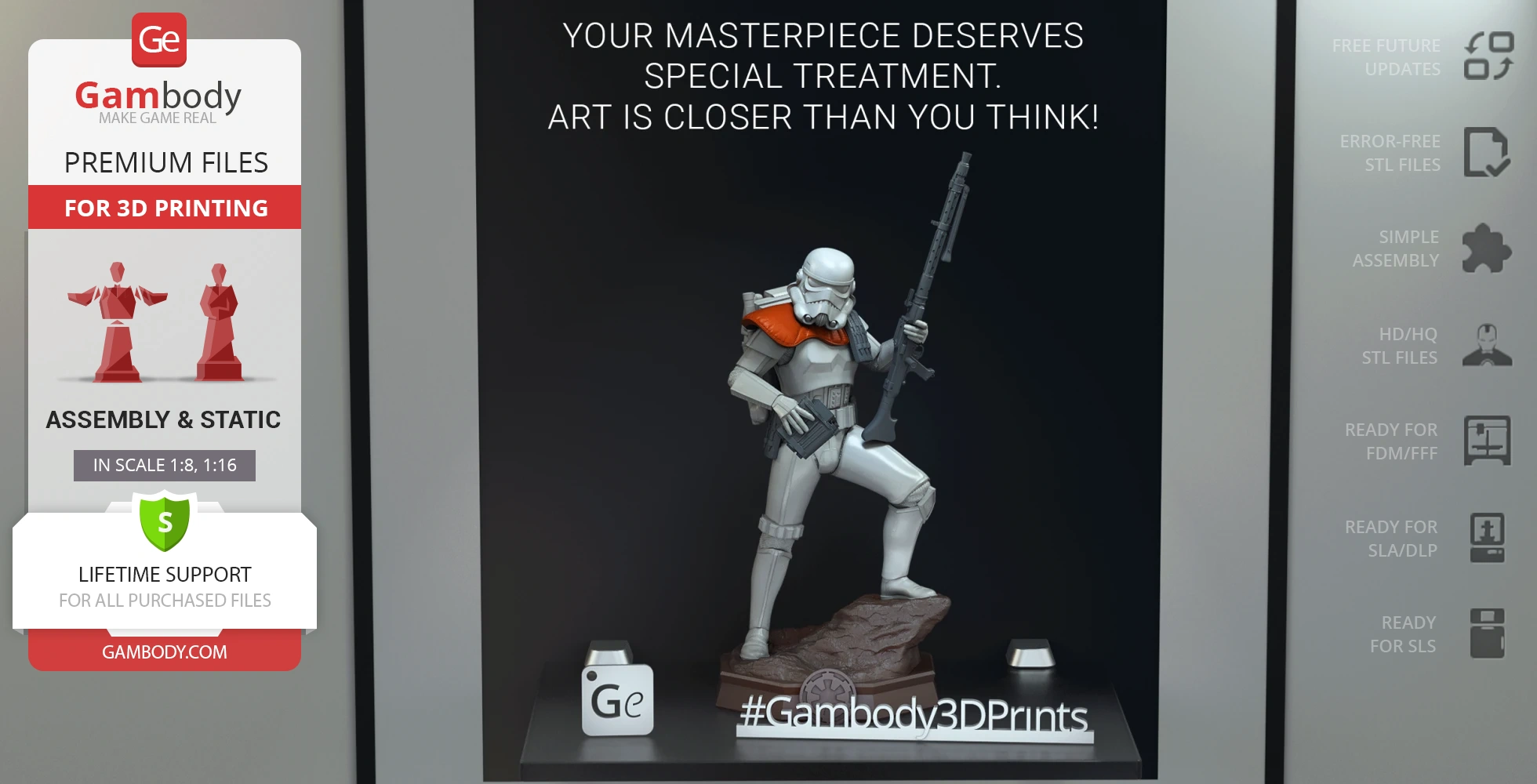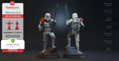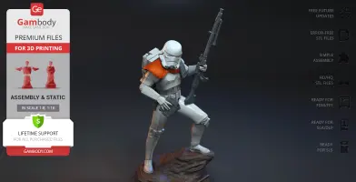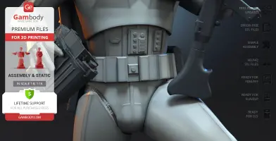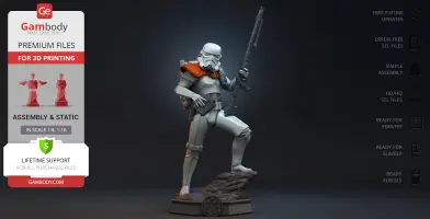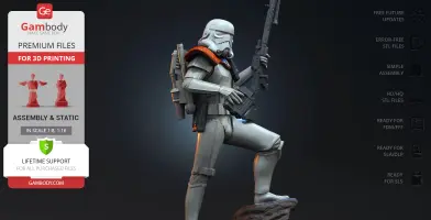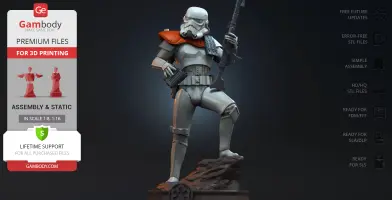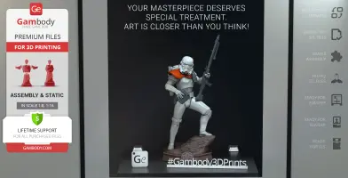 Watch the tutorial on how to assemble the 3D printed Sandtrooper model from the provided 3D print files onGambody YouTube channel.