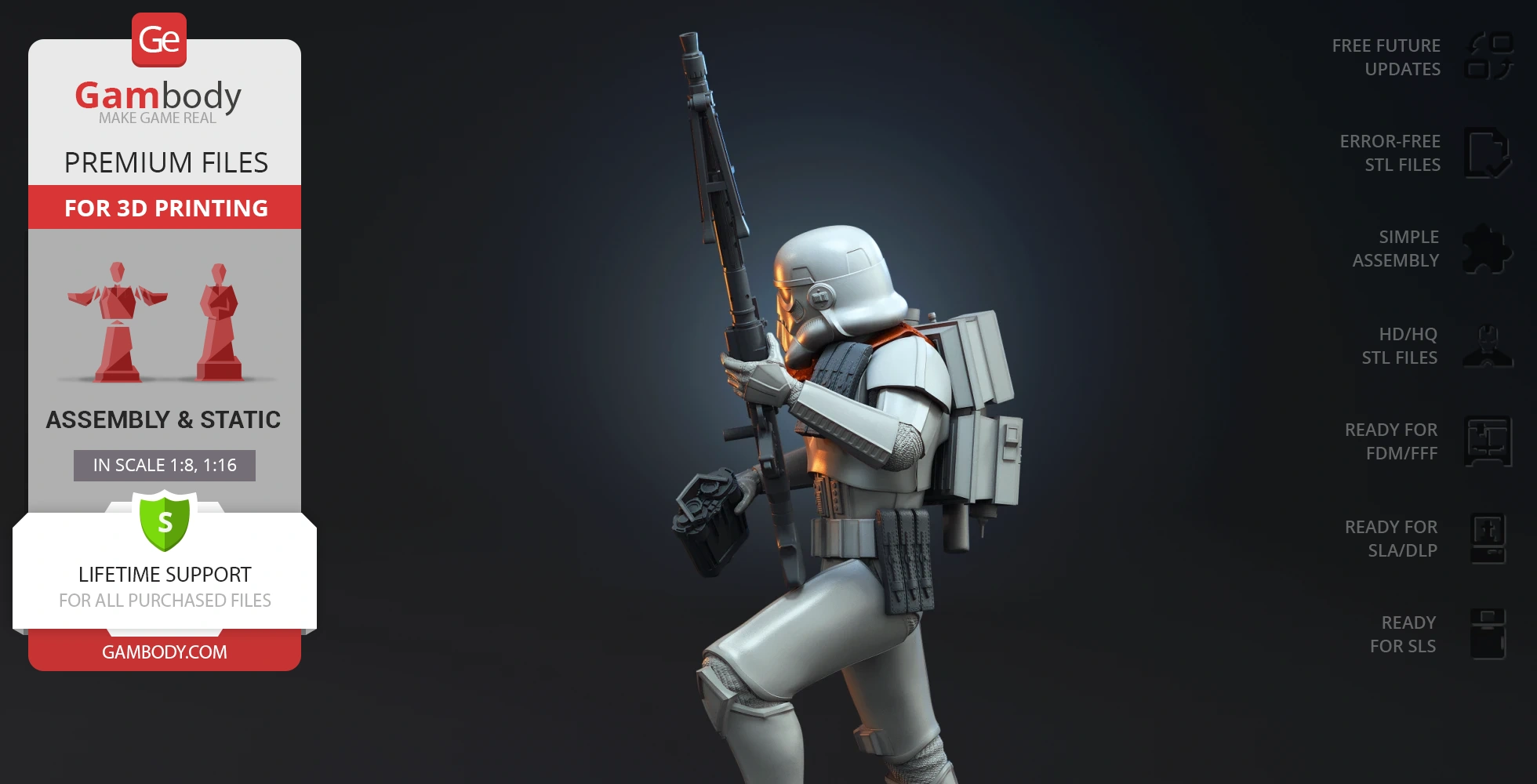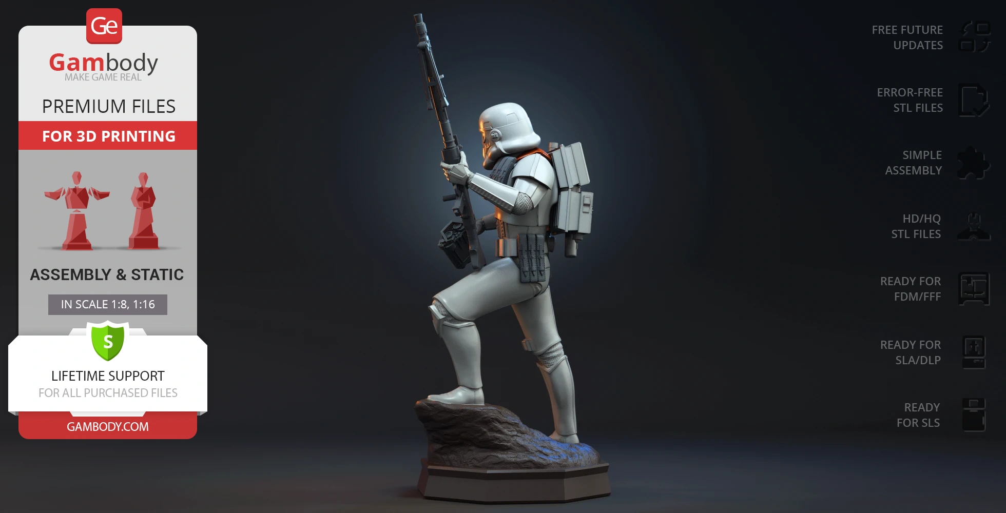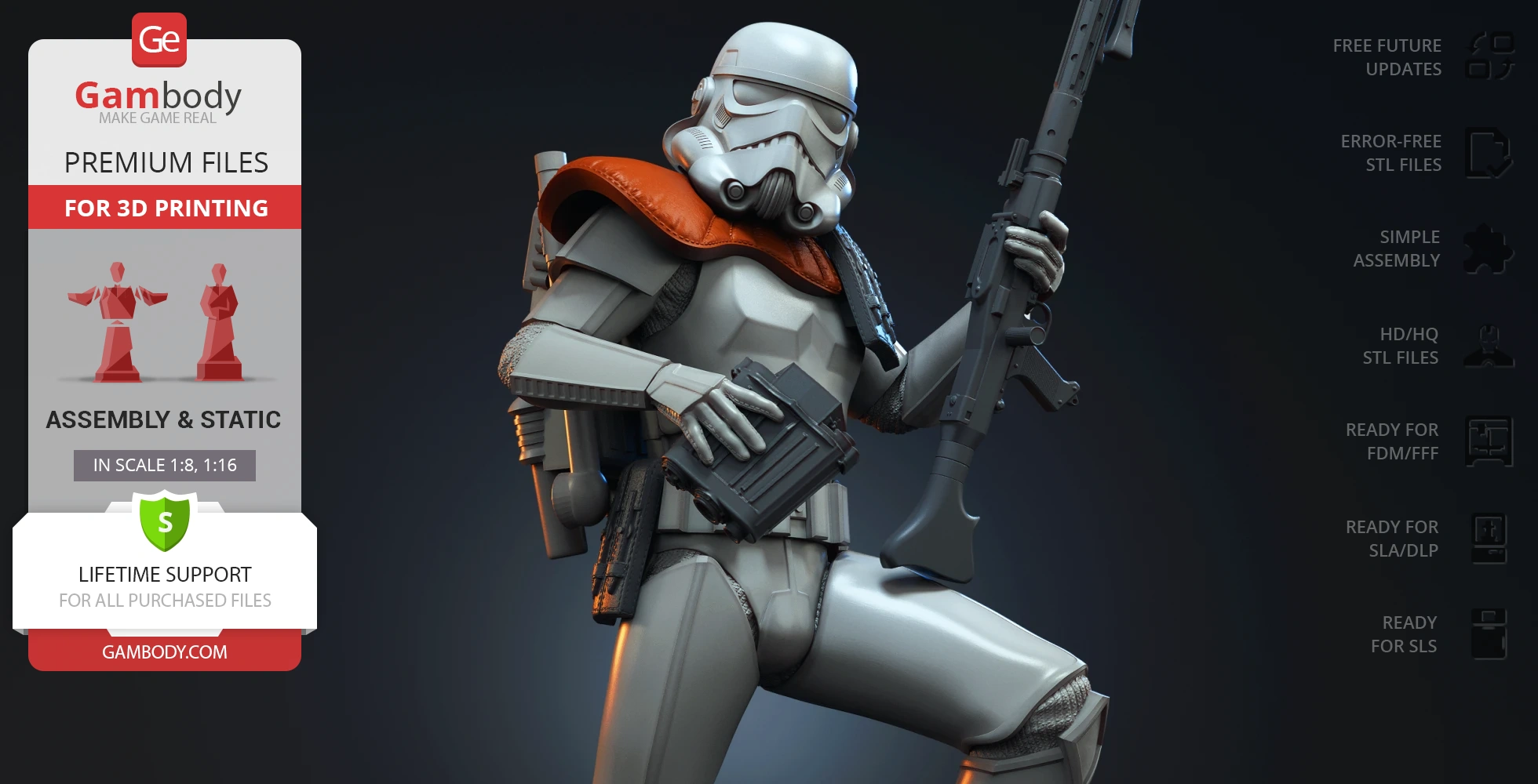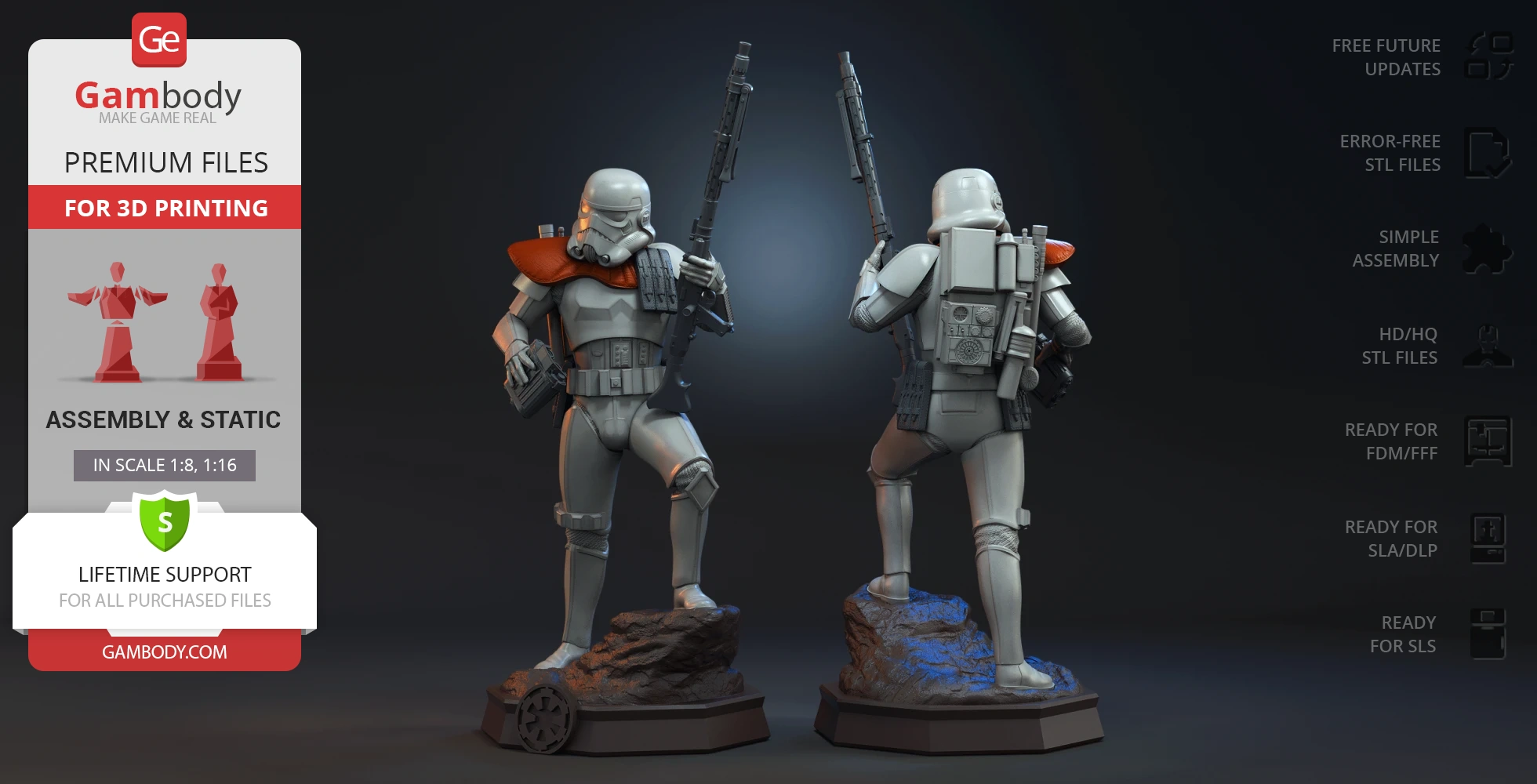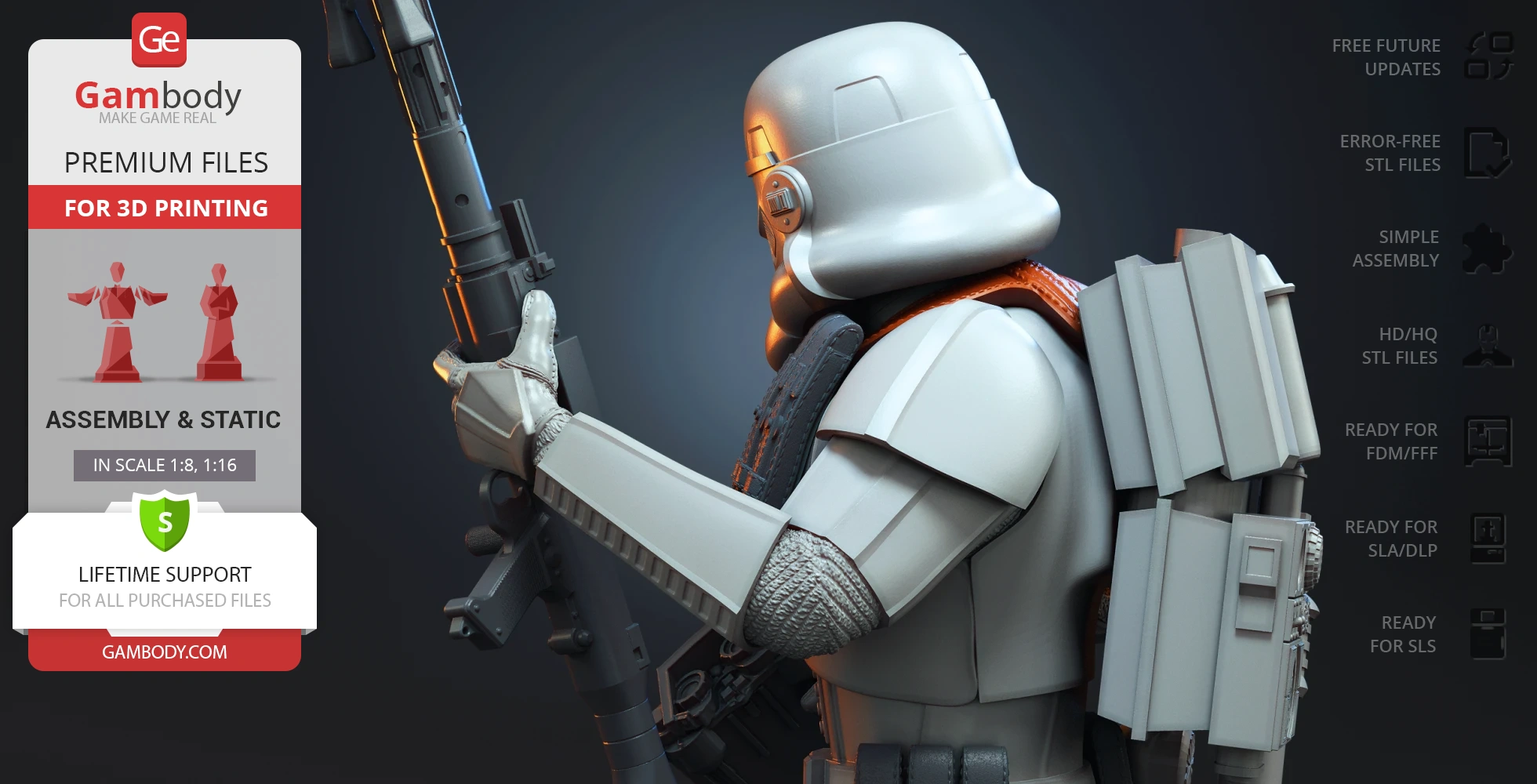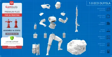 - STL files of high-poly Sandtrooper design for 3D printing consist of 56 files;