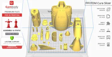For you to receive the cleanest 3D printing result possible, minimize the amount of filament needed for generated support, the spaceship was divided into convenient assembly parts.