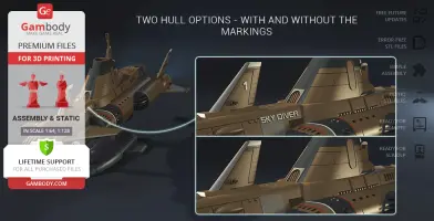- Two hull options - with and without the markings;