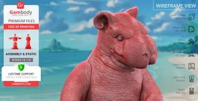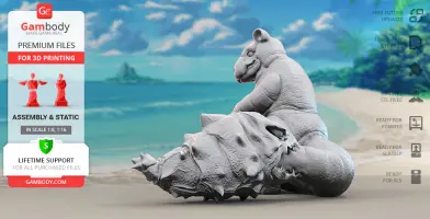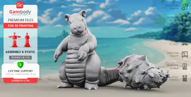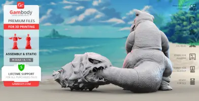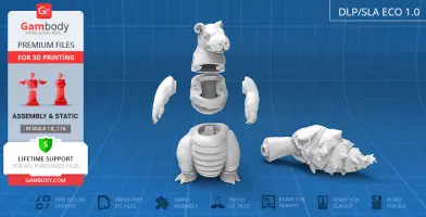 Slowbro is a static assembly figurine and its moderation and adaptation for different types of 3D printers took Gambody team 38 hours in total. The cutting of Slowbro figurine was chosen by our team to minimise the amount of filament needed for generated support and some of the model’s parts were hollowed out for you to save resin in the model’s Eco version. In order to receive the cleanest result possible the Pokemon was cut for 3D printing along the stripes of its belly and its body seams and is now provided as 11 separate parts. With the same purpose, Shellder that is commonly attached to Slowbro’s tail was divided in half and its spiral shell is now also provided separately. All assembly parts are provided in STL files in recommended positions that were worked out so to ensure the smoothness of the details’ surfaces after printing and that the 3D printing beginners won't face difficulties when placing the parts on a build plate.