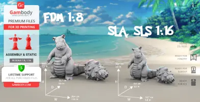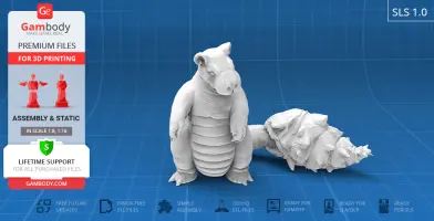 - STL files of Slowbro 3D printing model which consist of 22 parts;- 4 versions of files for this model for FFF/FDM, DLP/SLA, DLP/SLA Eco and SLS;- High-poly detailed figurine of Slowbro;- Detailed settings that we provide as a recommendation for Cura , Simplify3D and Slic3r for the best print;- Full technical support from the Gambody Support Team.