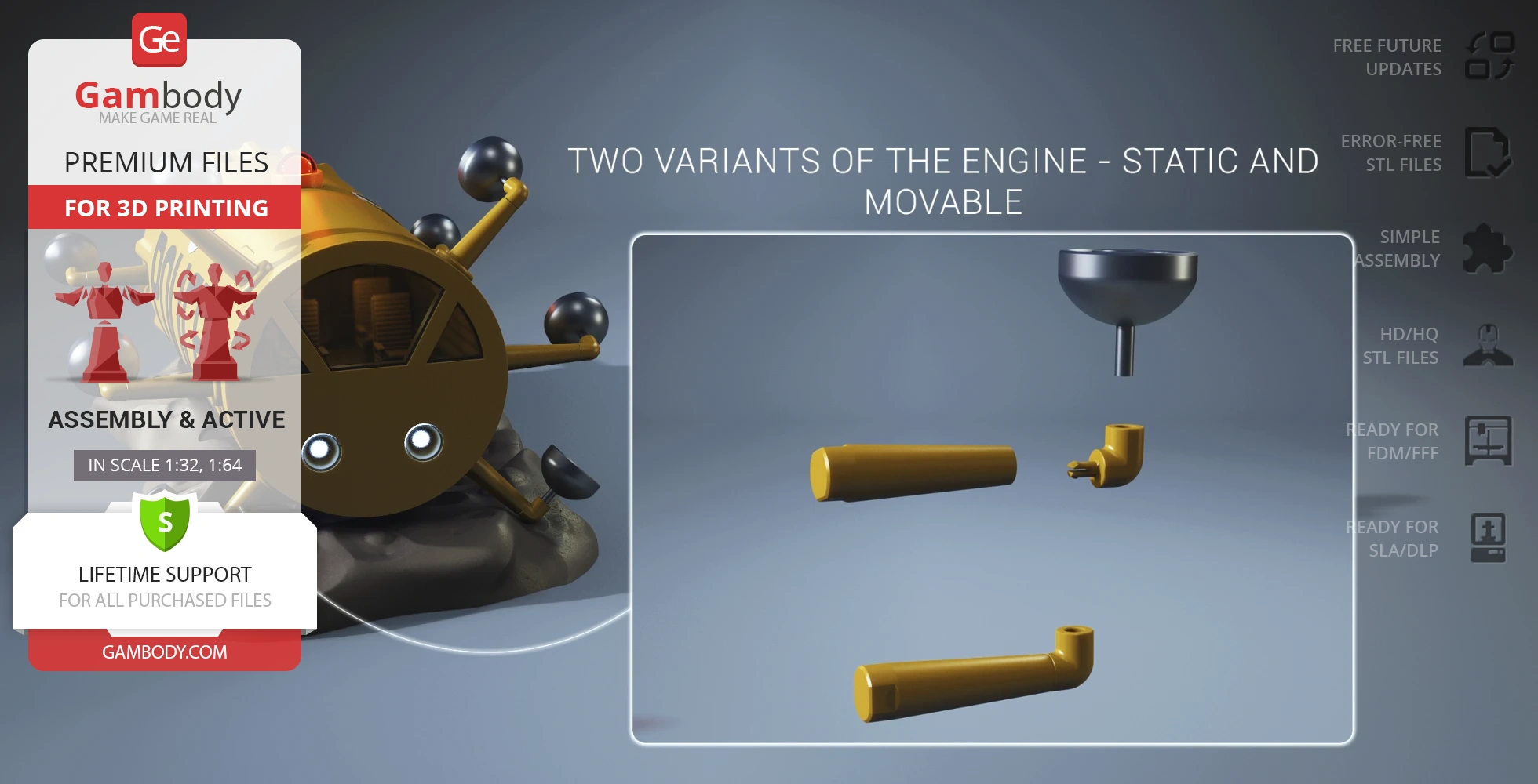 For you to receive the cleanest 3D printing result possible, minimize the amount of filament needed for generated support, and make use of the active elements designed by Gambody Engineers, the vehicle was divided into convenient assembly parts.