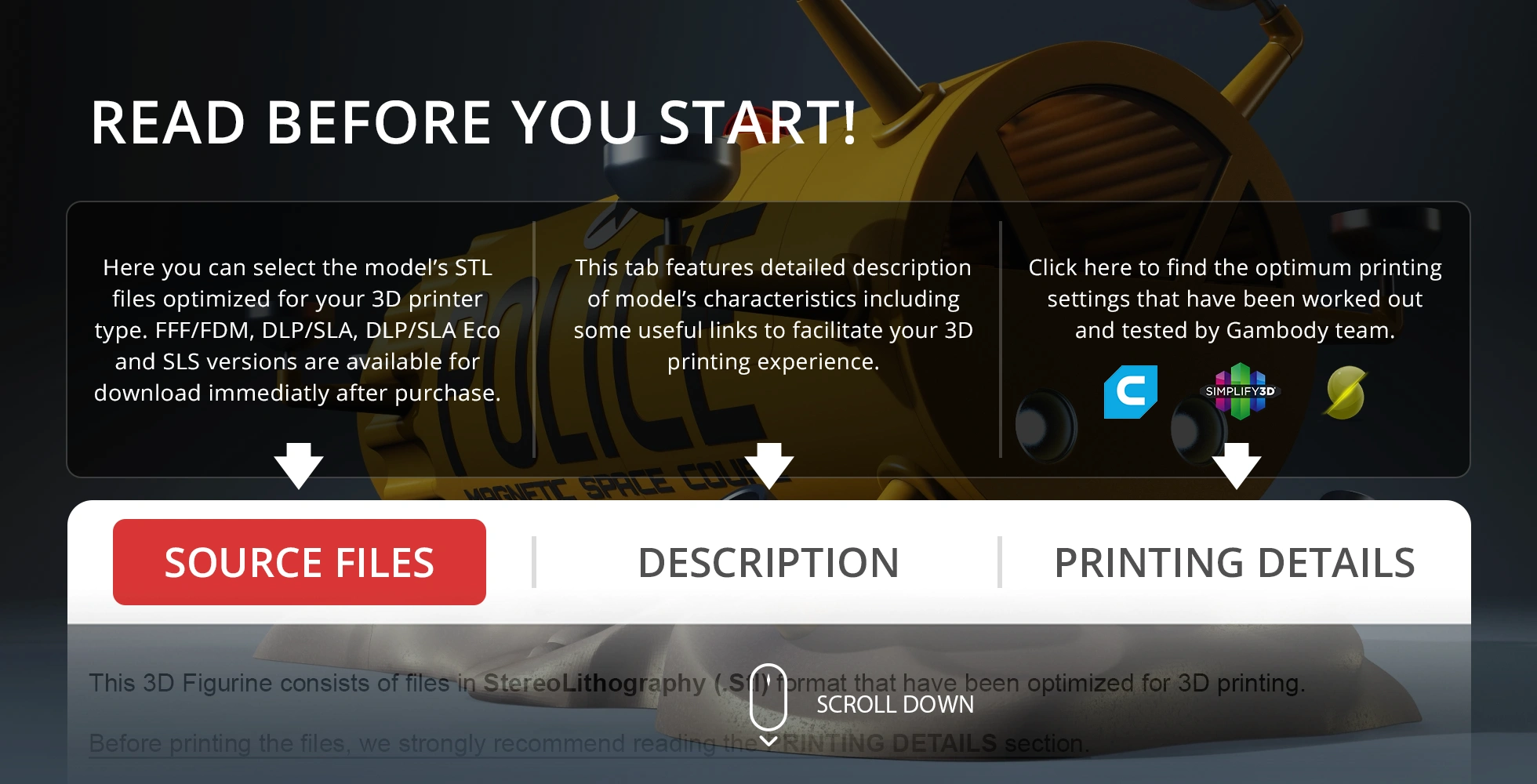 Before printing the files, we strongly recommend reading the PRINTING DETAILS section.