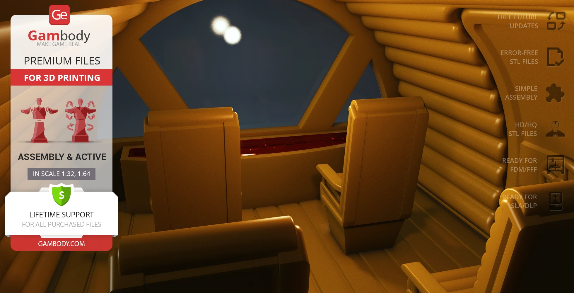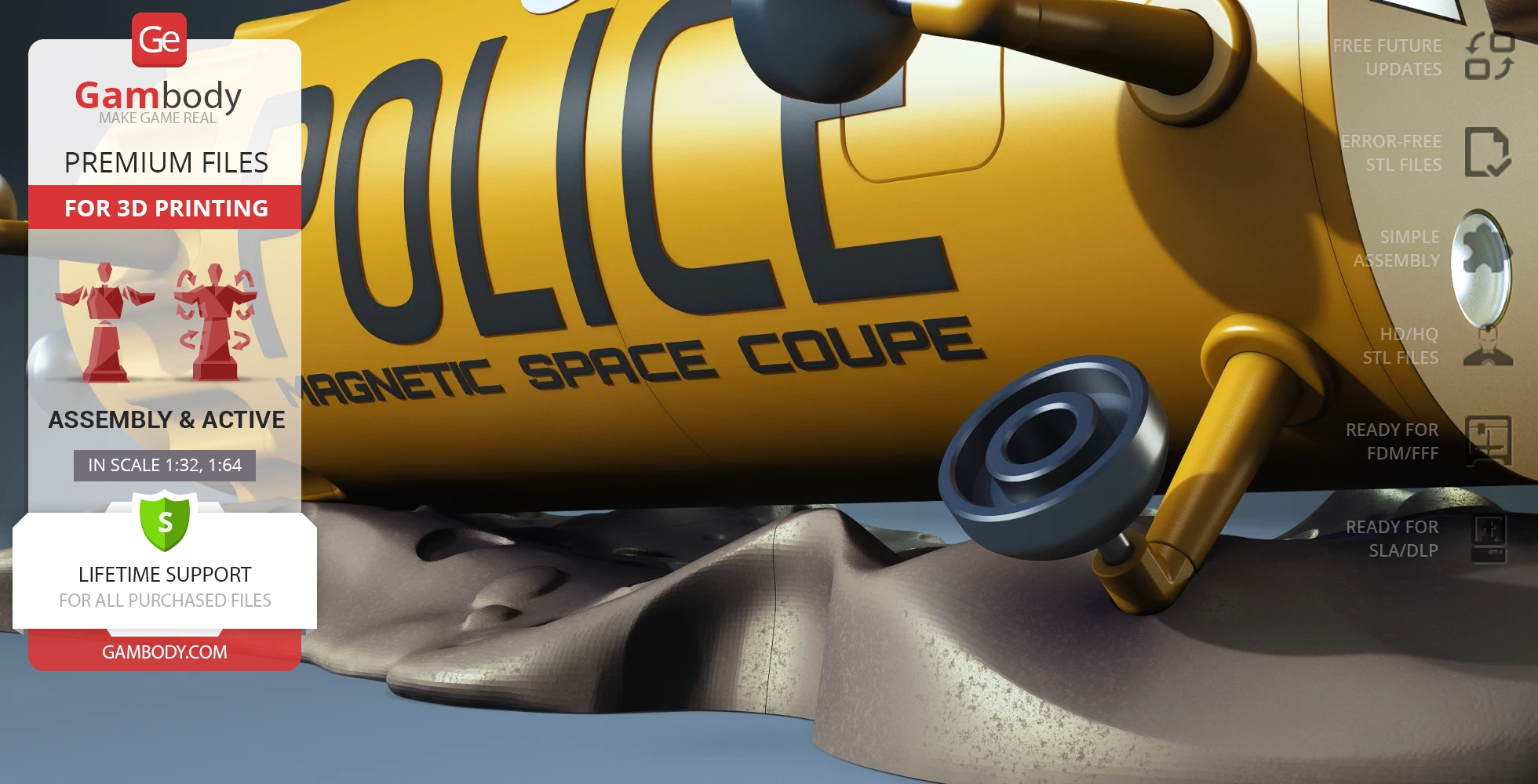 - STL files of high-poly Tracy’s Space Coupe Model for 3D printing consist of 50 files;