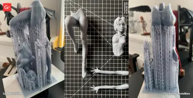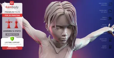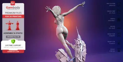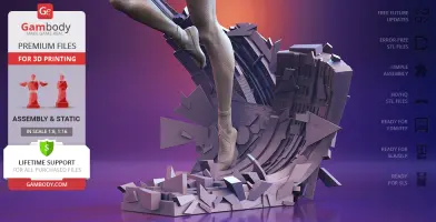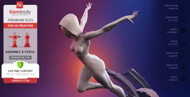 Inspired by the female character from the American computer-animated superhero film, Spider-Man: Into the Spider-Verse, our contributing 3D artist created this beautiful model. Spider-Gwen is depicted in a flying pose, as she navigates the town sticking to the buildings using her web shooter. The heroine is wearing ballet shoes, which emphasize her grace and fighting style. The 3D model can be printed with a face mask and mounted on a platform with city skyscrapers. Spider-Gwen can take a special place in your collection of Marvel superheroes!