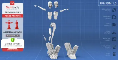• STL files of high-poly Spider-Gwen model for 3D printing consist of 43 files;