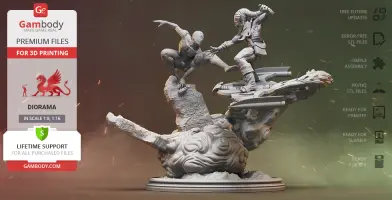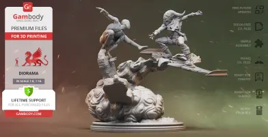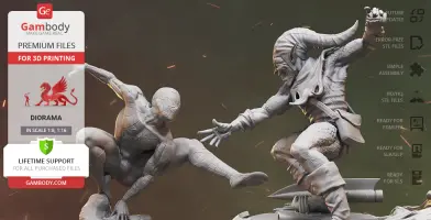 Spider-Man vs Green Goblin in Diorama 3D Printer Files | Assembly includes 3 version(s) for the supported 3D printer type(s): FFF/FDM, DLP/SLA, SLS. Files are available for download after purchase.