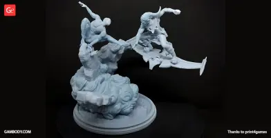 - To conceal the places where the assembly parts of the model must be connected, the models were cut along the contour of both characters' suit seams and properly separated from the platform;