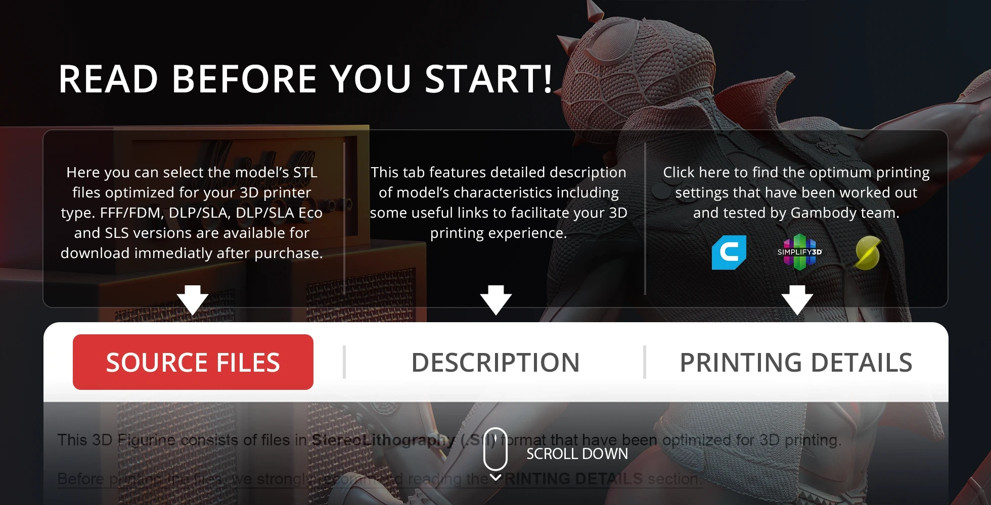 - 4 versions of Spider-Punk STL files for FFF/FDM, DLP/SLA, DLP/SLA Eco, and SLS — files for all versions are available for download after the purchase;
