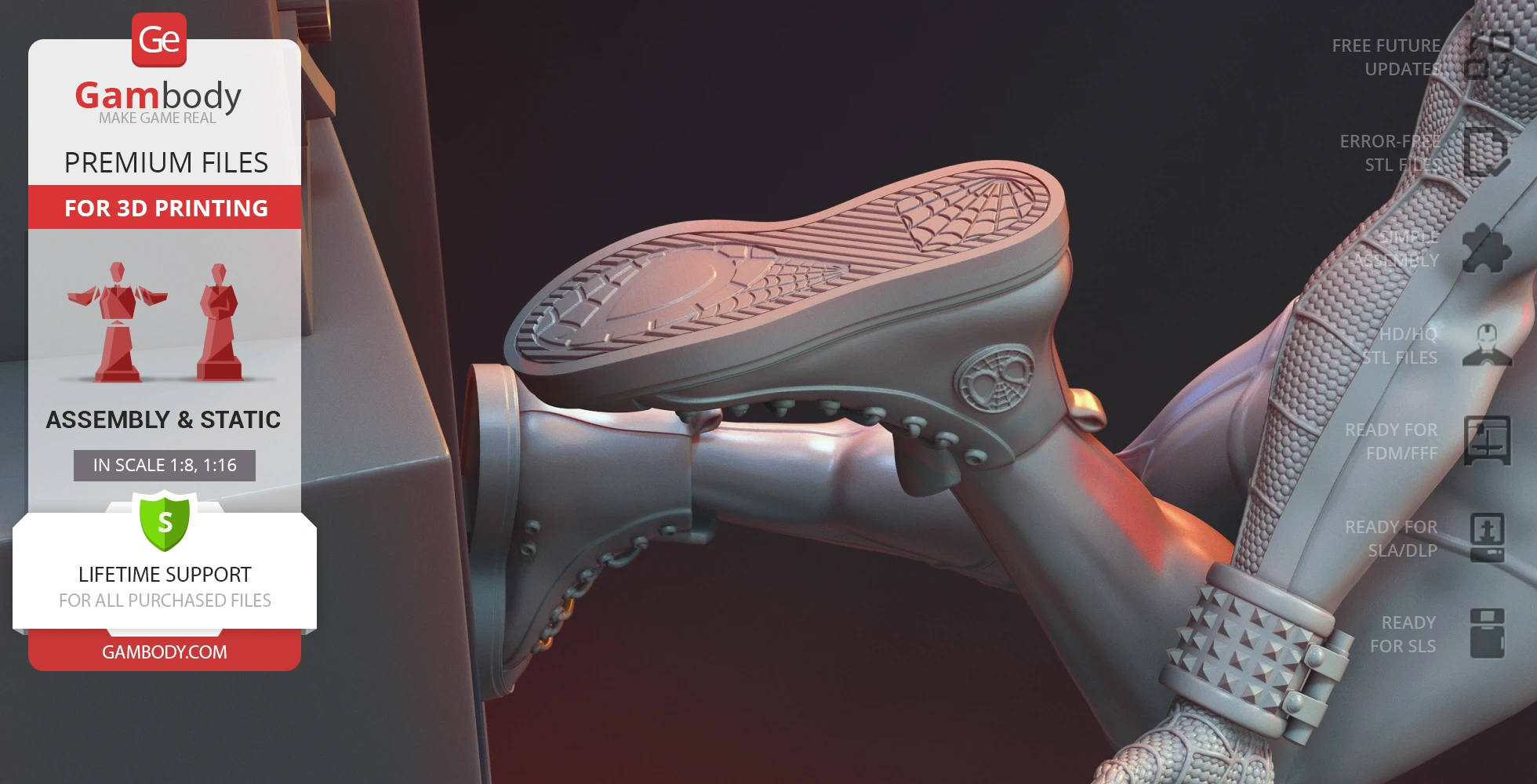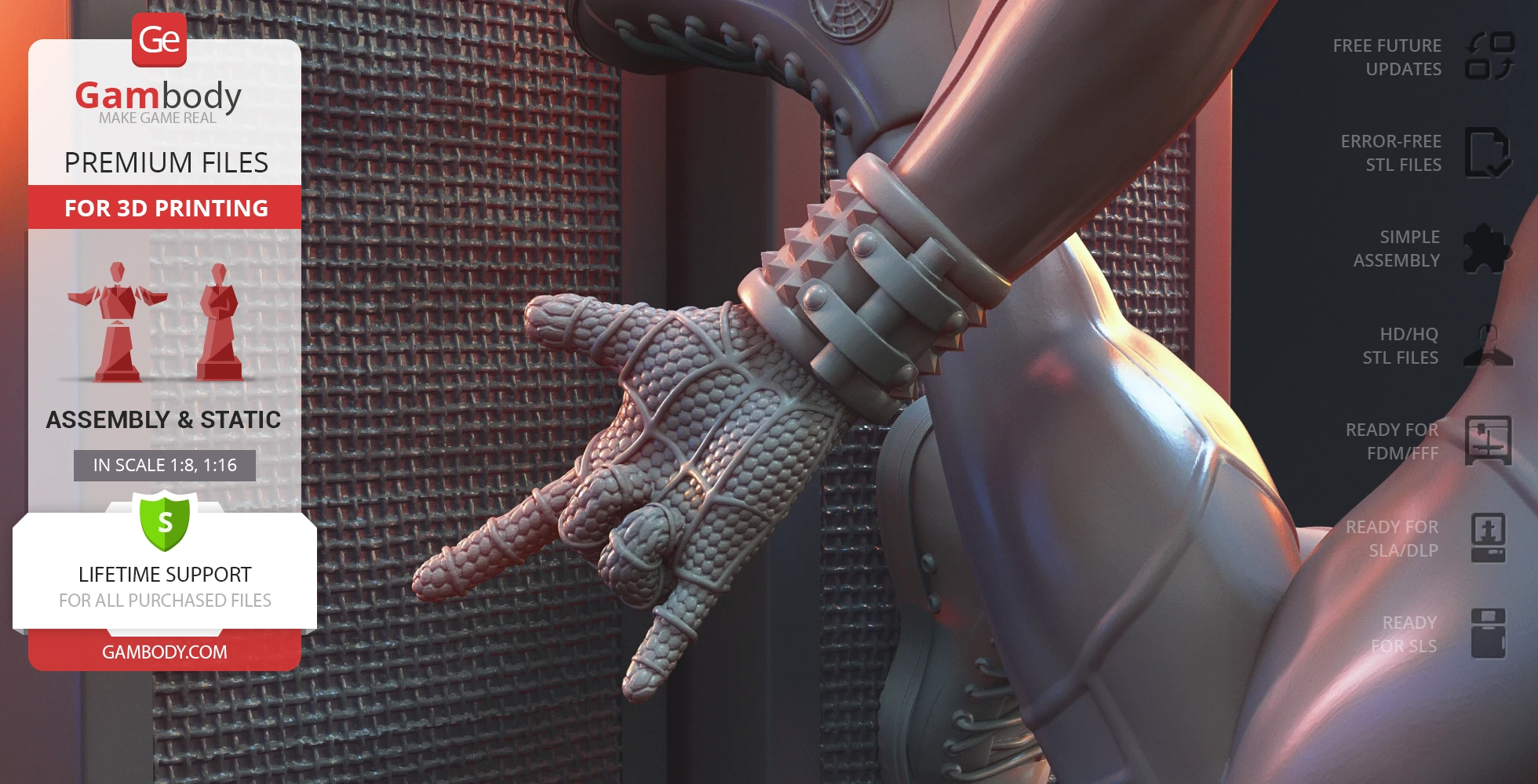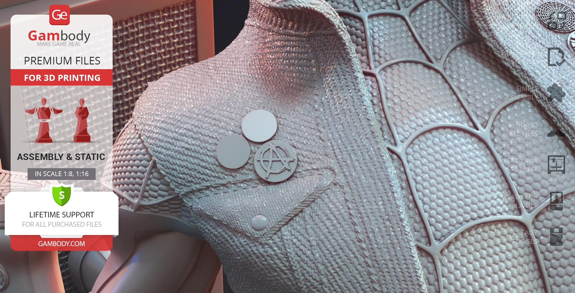 - STL files of high-poly Spider-Punk model for 3D printing consist of 50 files;