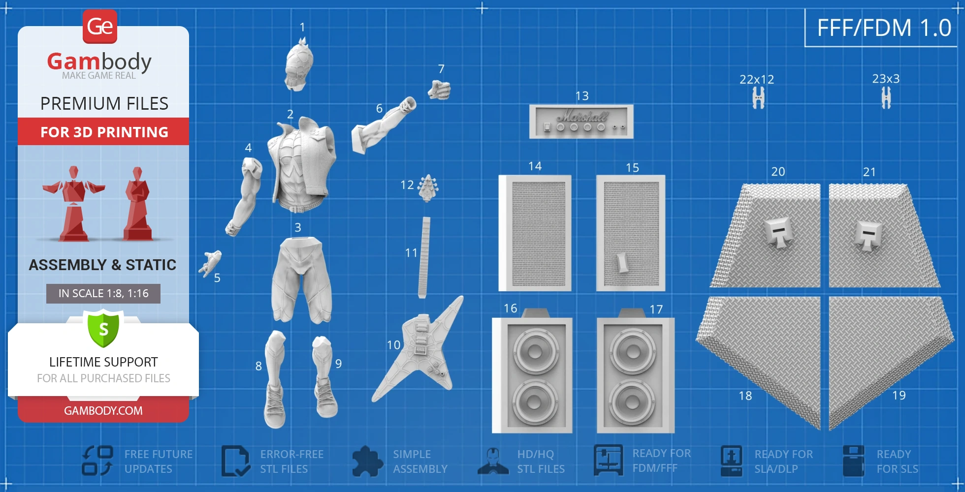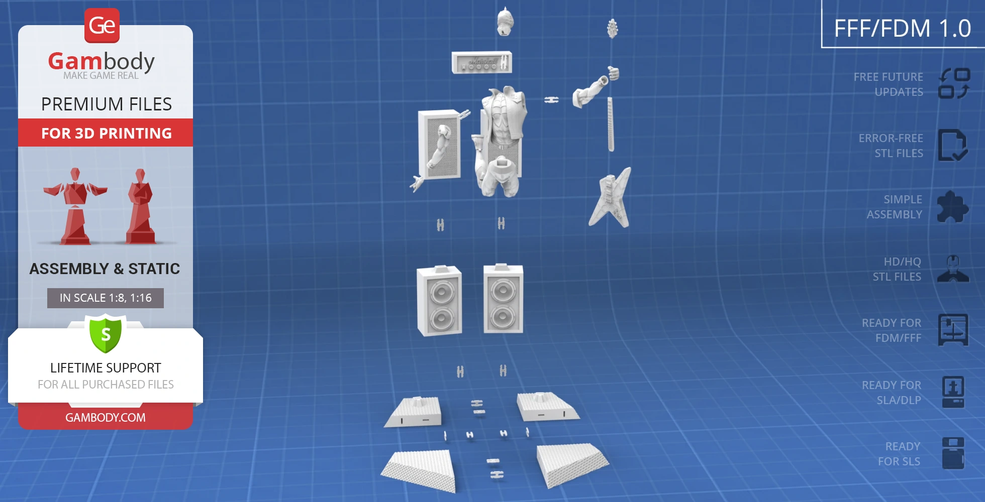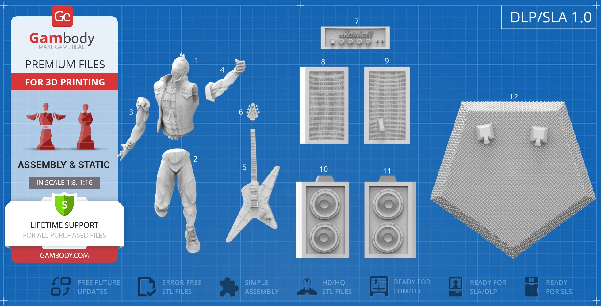 - The model is available in recommended scales of 1:8 for the FFF/FDM version and 1:16 for the DLP/SLA/SLS versions, based on approximate height of Spider-Punk (1800 mm).
