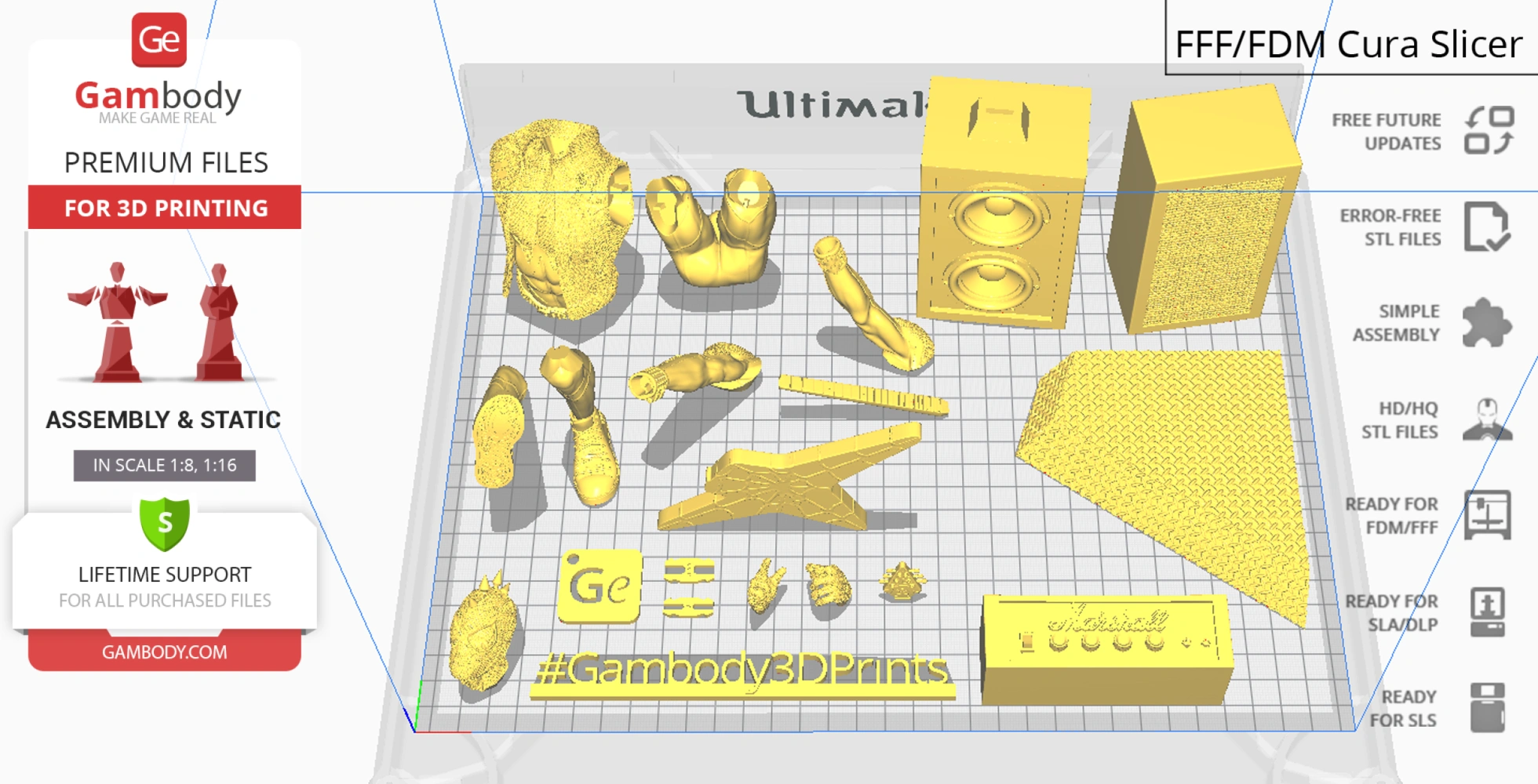- The assembly parts in the FFF/FDM version come in the recommended print orientations for easy bed placement;