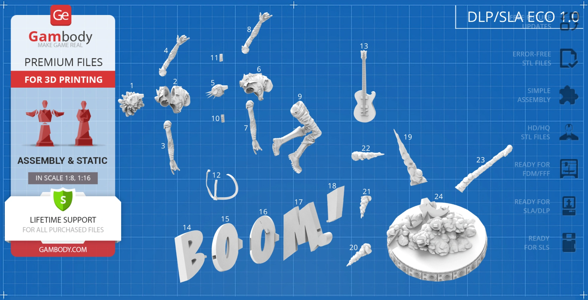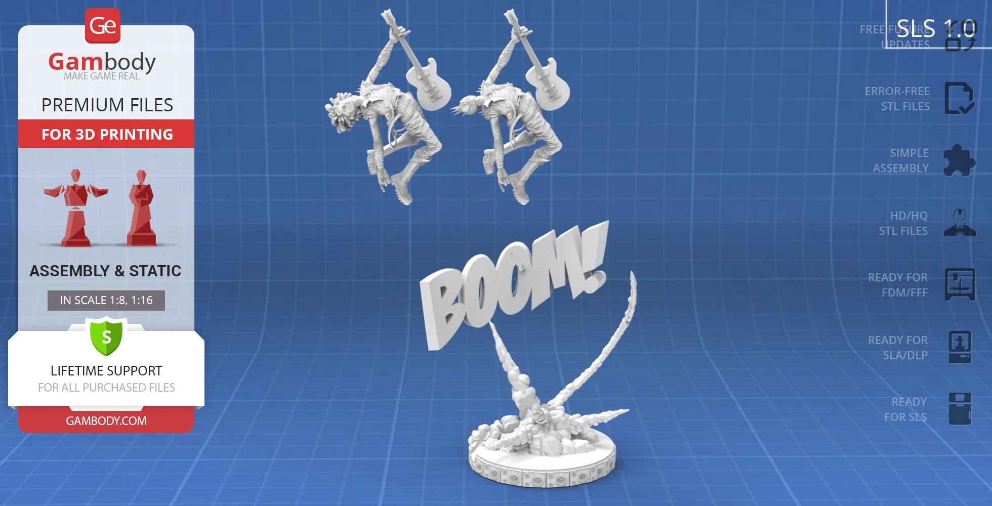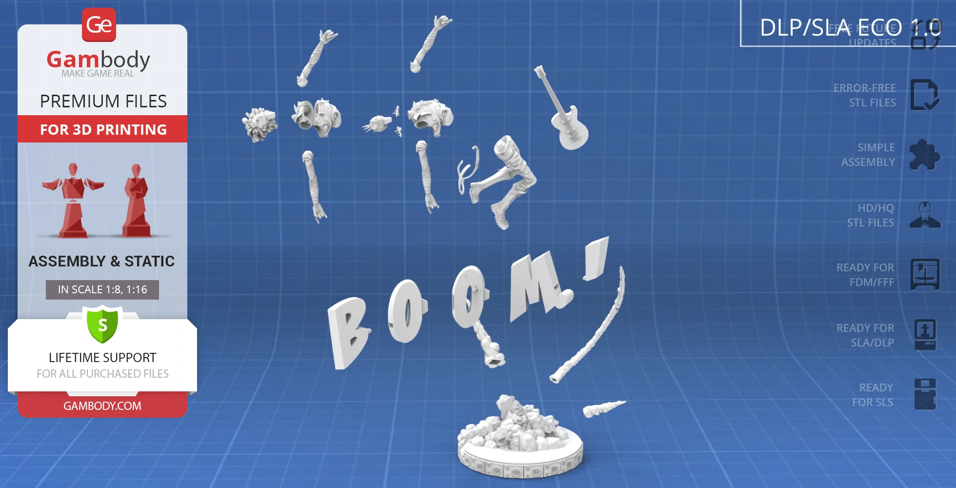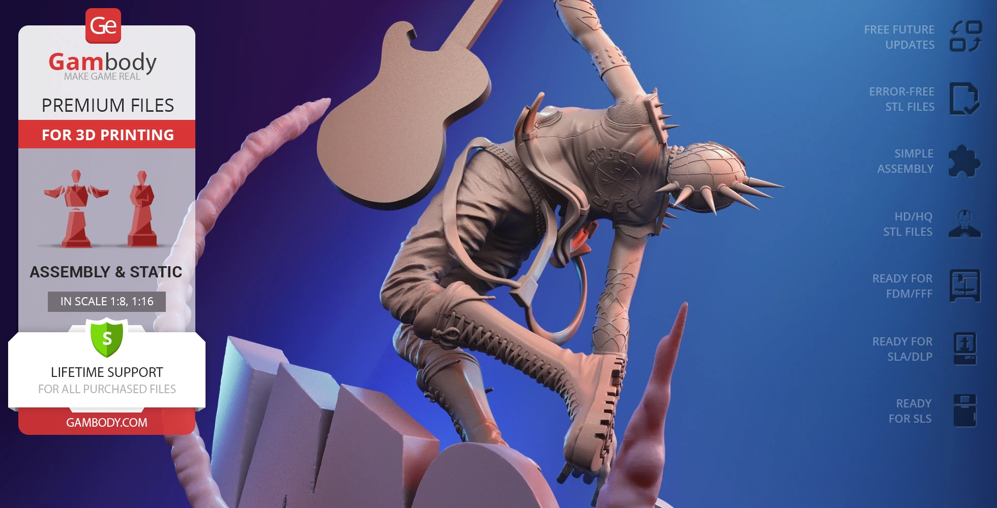 • 4 versions of Spider-Punk STL files for FFF/FDM, DLP/SLA, DLP/SLA Eco, and SLS files for all versions are available for download after the purchase;