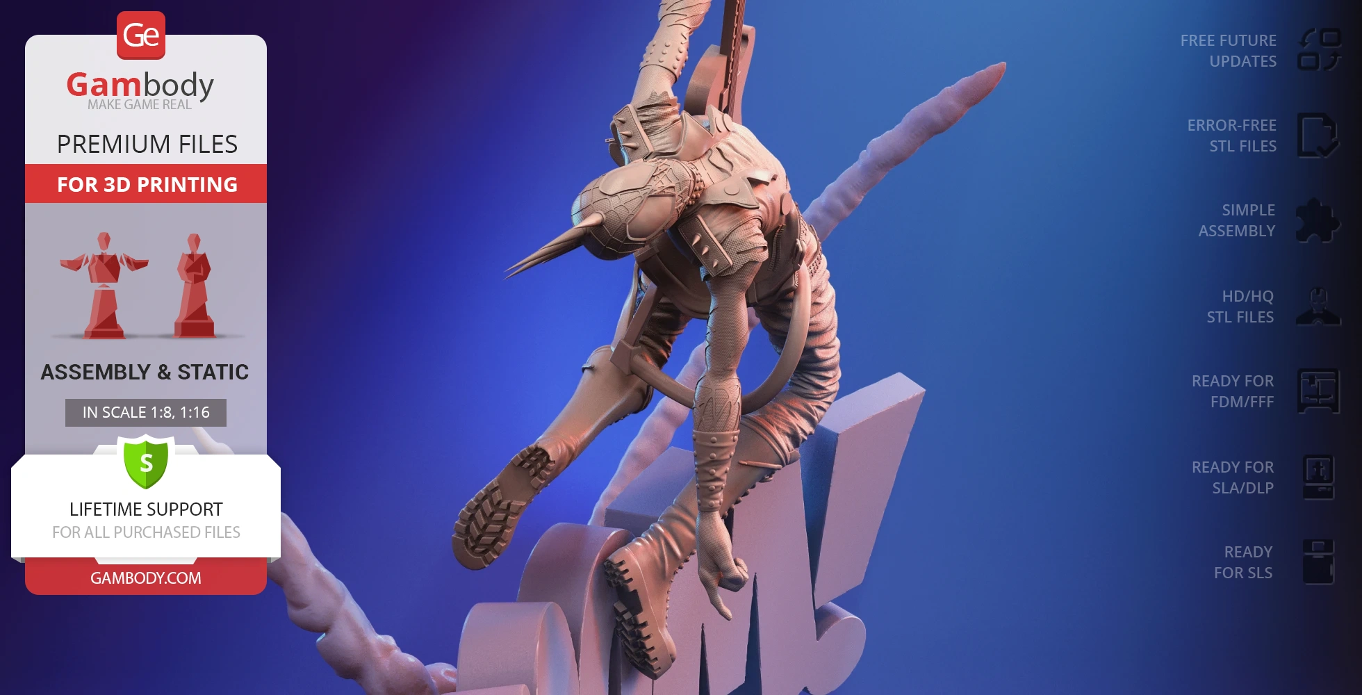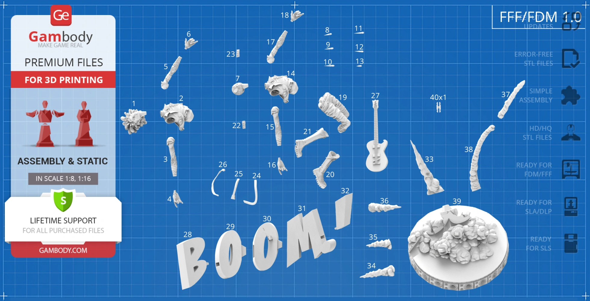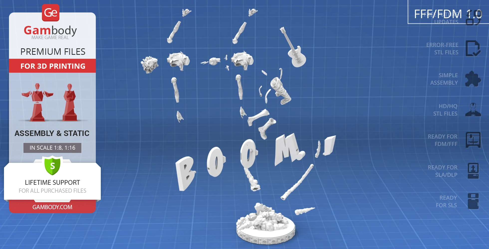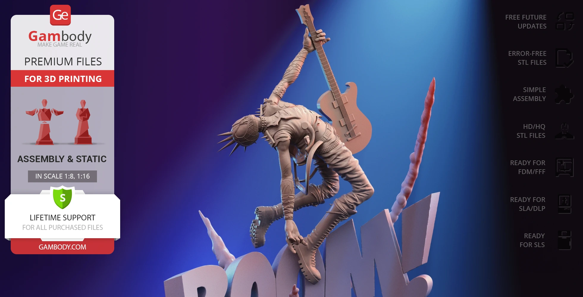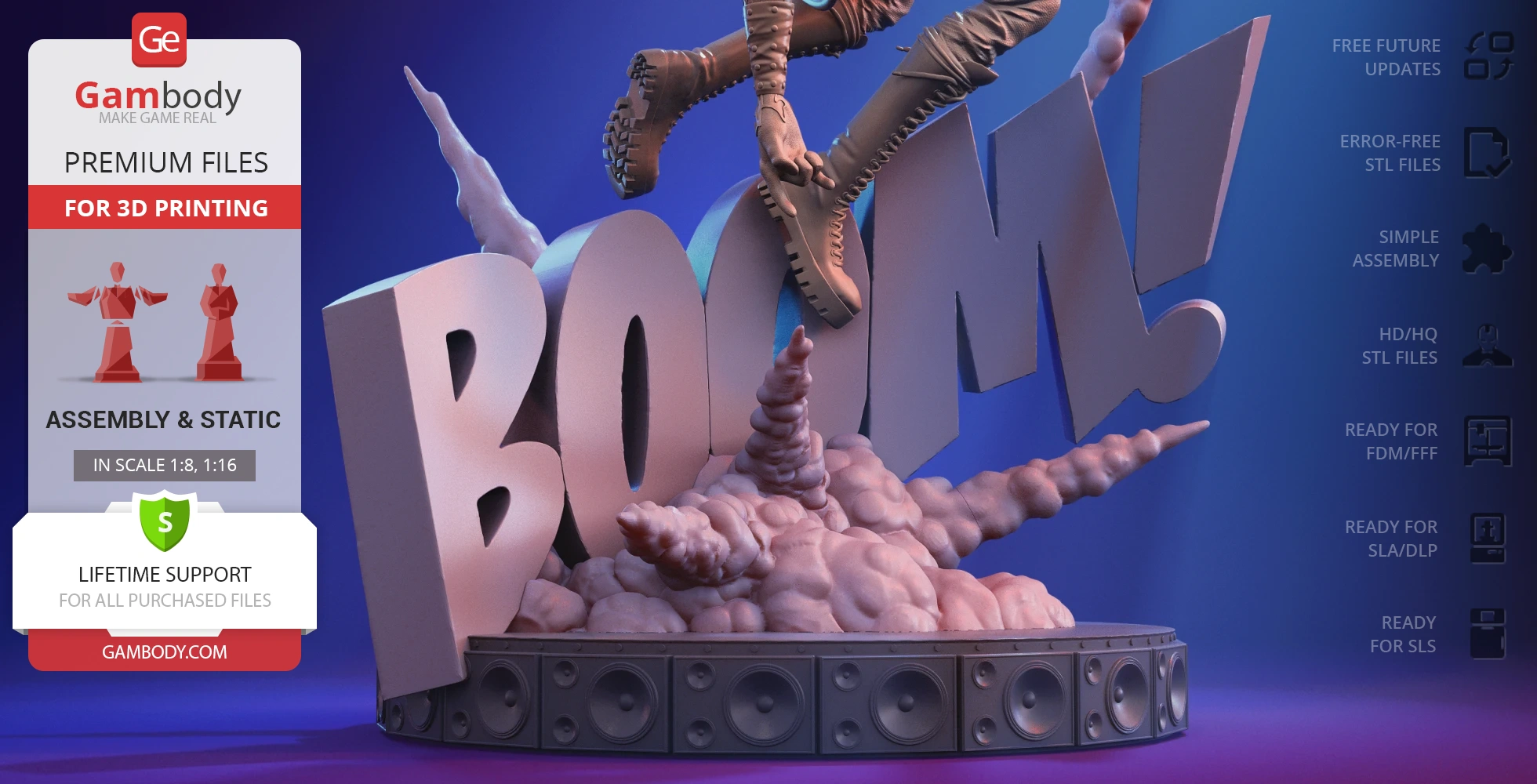 • 4 versions of Spider-Punk STL files for FFF/FDM, DLP/SLA, DLP/SLA Eco, and SLS files for all versions are available for download after the purchase;