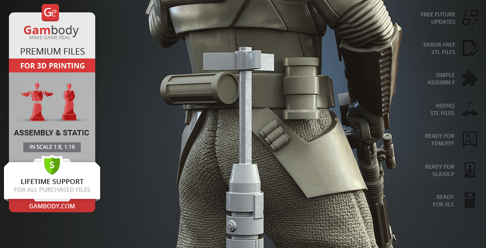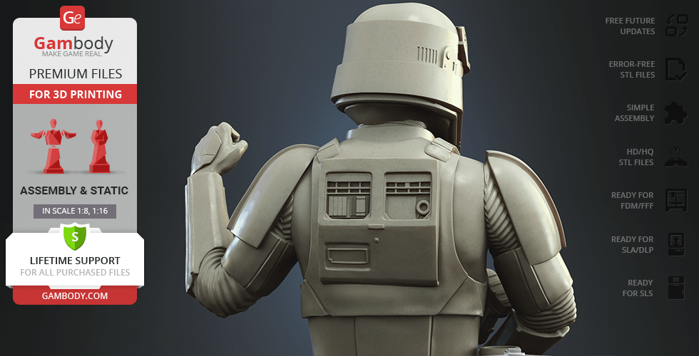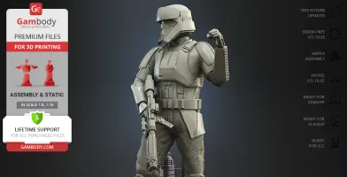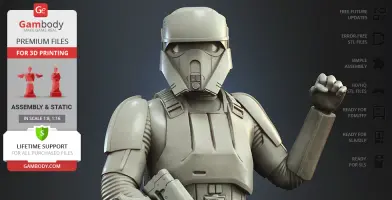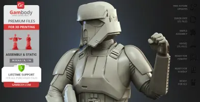 Watch the tutorial on how to assemble the 3D Printed Shoretrooper model from the provided 3D Print Files on Gambody YouTube channel.