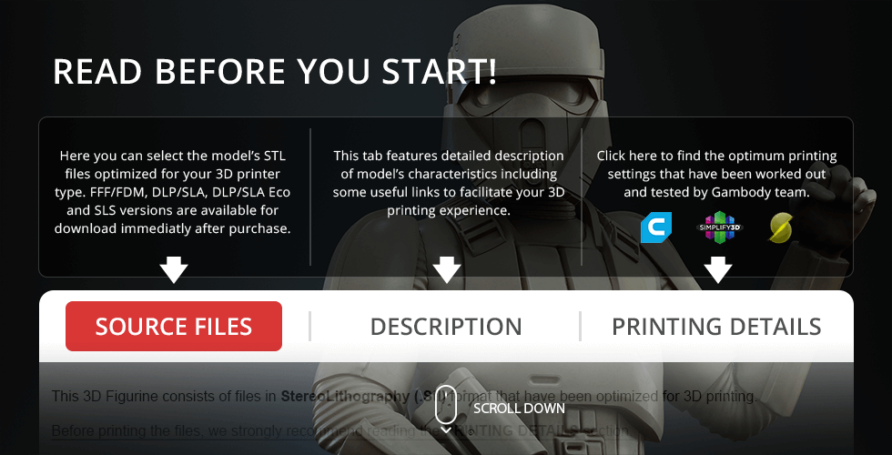 You can get the STL Files of Shoretrooper model immediately after the purchase! Just click the green Buy button in the top-right corner of the model’s page. You can pay with PayPal or your credit card.