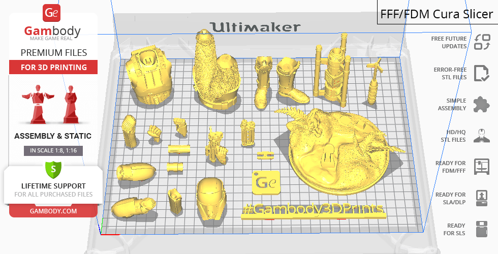 - The model is available in recommended scales of 1:8 for the FFF/FDM version and 1:16 for the DLP/SLA/SLS versions.