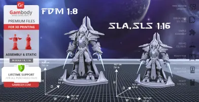 The model's scale was calculated from Artanis' actual height that is 3000 mm. The 3D printing figurine's chosen scale is 1/8 for the FFF/FDM version and 1/16 for the DLP/SLA/SLS versions.