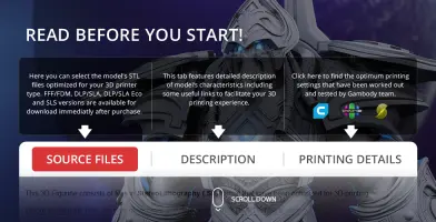 Artanis 3D Printing Figurine comes in 6 versions for each 3D printer type (FFF/FDM, DLP/SLA and SLS). Files for each version are available for download after the purchase.