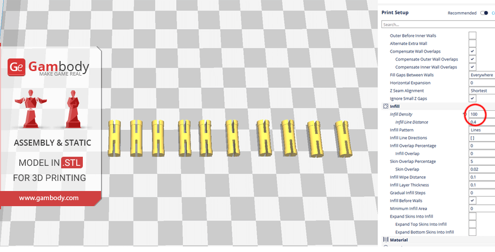 Disclaimer: The following printing settings are a recommendation, not an obligation. The parameters can vary depending on the peculiarities of your 3D printer, the material you use and especially the particular assembly part at hand. Each part that any model comprises often needs preliminary review and you are free to tweak the settings the way you find suitable.
