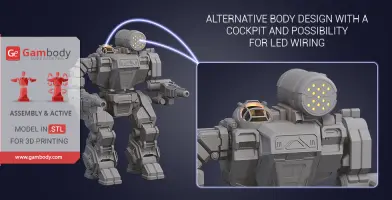 All assembly parts in the FFF/FDM versions are provided in STL files in recommended positions that were worked out in order to ensure the smoothness of the details’ surfaces after printing and that the 3D printing beginners won't face difficulties when placing the parts on a build plate. We highly recommend that you get acquainted with the “Assembly video” before getting down to the Summoner (Thor) BattleMech 3D Printing Model model.