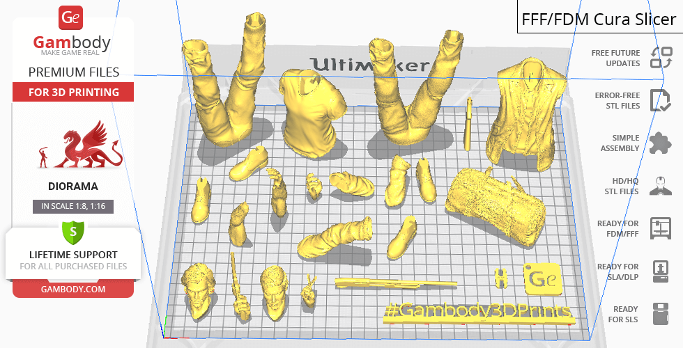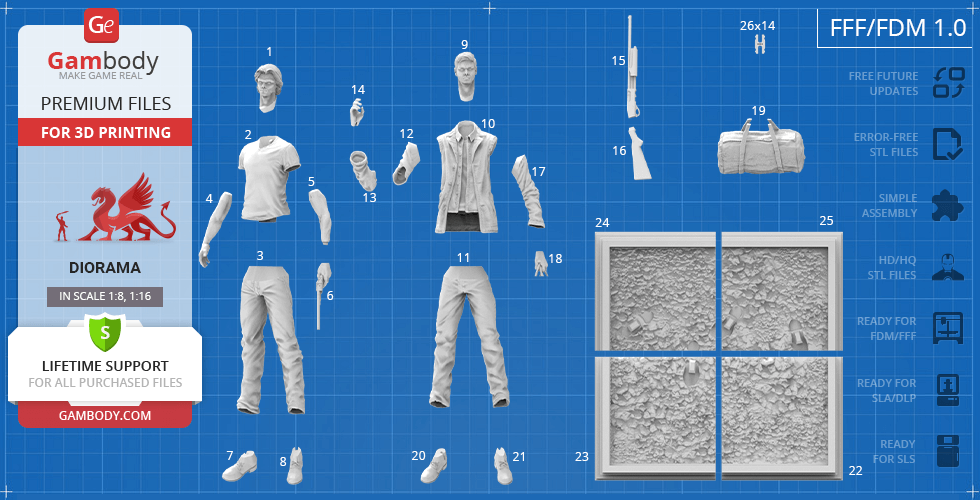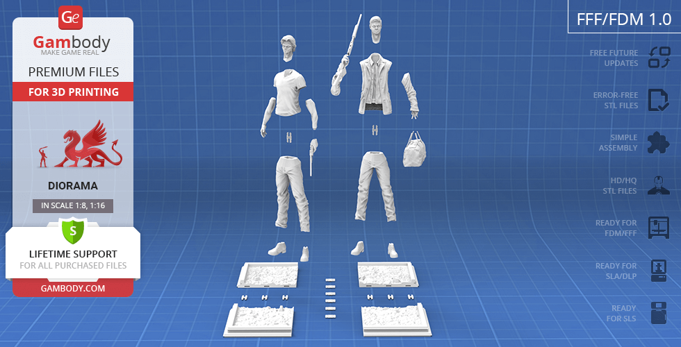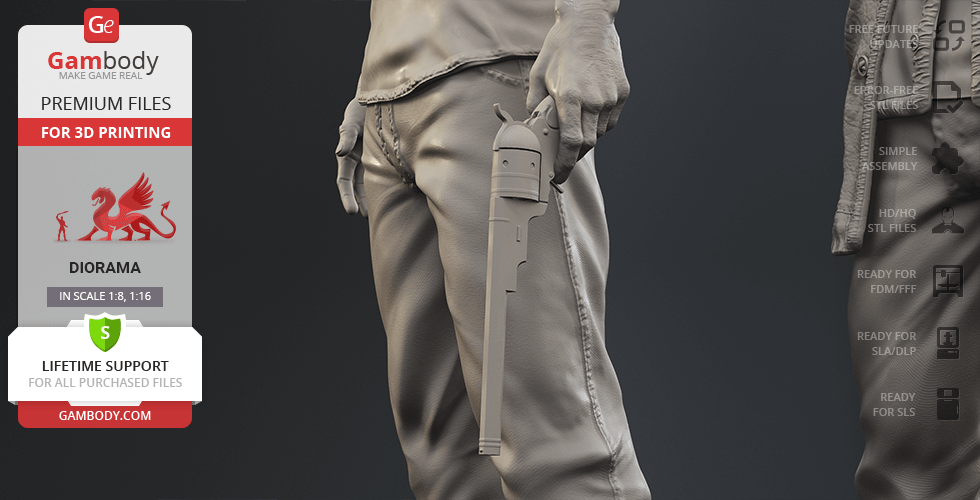 - The model is available in recommended scales of 1:8 for the FFF/FDM version and 1:16 for the DLP/SLA/SLS versions, based on the height of Winchester brothers.