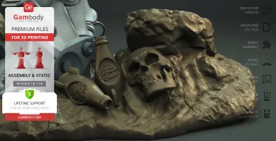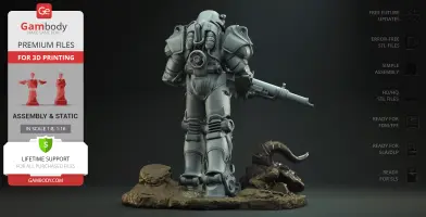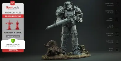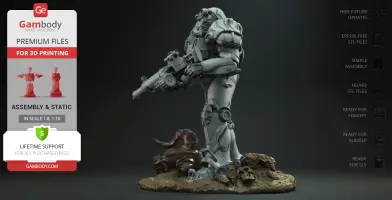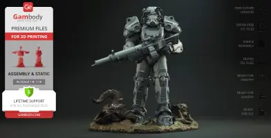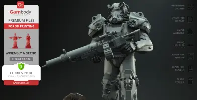The depiction of T-60 Power Armor Suit in the upcoming Fallout TV show inspired our contributing 3D artist to create this remarkable 3D print model. The massive construction of the suit does not make us doubt the protective features of T-60 Power Armor: the head of the Sole Survivor is protected with a helmet equipped with a thermal imager, a headlamp, and a gas mask; the arms are covered with special bracers and knuckle-dusters; the reactive torso plates are perfect for inflicting attacks while the jet pack allows the wearer to “propel into the air”; the build of the legs enables good sprint speed. The semi-automatic assault rifle looks no less impressive adding bigger belligerence to the appearance of T-60 Power Armor Suit. The elaborate design of the model and its authenticity will give you indescribable emotions when 3D printing the project, believe us!