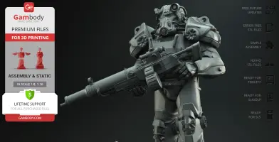 Watch the tutorial on how to assemble the 3D Printed T-60 Power Armor Suit model from the provided 3D Print Files onGambody YouTube channel.