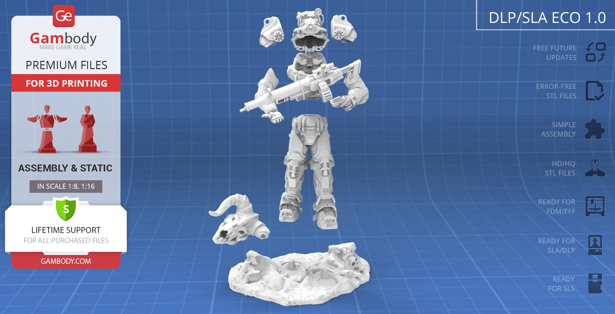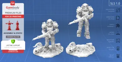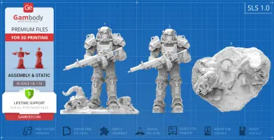 • 4 versions of T-60 Power Armor STL files for FFF/FDM, DLP/SLA, DLP/SLA Eco, and SLS files for all versions are available for download after the purchase;