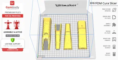 - Assembly kit includes pins and locks to connect parts securely without glue. One pin 86_pin_(x11) needs to be printed 11 times and one lock 87_Ge_lock_10H_(21) needs to be printed 21 times;