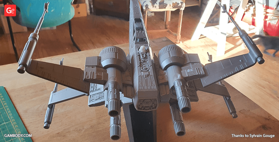 T-70 X-Wing is a successor to the signature T-65B starfighter that was initially manufactured for New Republic Defense Fleet. Similar to its predecessor, T-70 is equipped with a laser cannon on each wing and can boast of its hyperdrive capability and life-support system. The starfighter is designed for a single pilot and an astromech droid who fits into a socket near the engines to assist with repairs or even take over the flight. The author of the model for 3D printing mentioned that it is the BB-8 droid that he placed in the socket who was known to accompany his pilot Poe Dameron during flights on the T-70 X-wing starfighter. In addition to the newly introduced T-70’s signature built-in dual proton torpedo launchers, the X-Wing features advanced weaponry and proves to be versatile and manoeuvrable enough fighting both starfighters and capital ships. These are the advances that were widely used by the Resistance’s Starfighter Corps after the ship’s retirement making the X-Wing a signature combat aircraft of the Resistance. The author of the T-70 X-Wing model for 3D printing spent 130 hours in total to depict the design of one of the most famous starfighters from the Star Wars universe. The 3D printing model of T-70 X-Wing is remarkable for its incredible level of detail. Just imagine how your fleet inspired by the universe far far away will gain by the iconic starfighter!