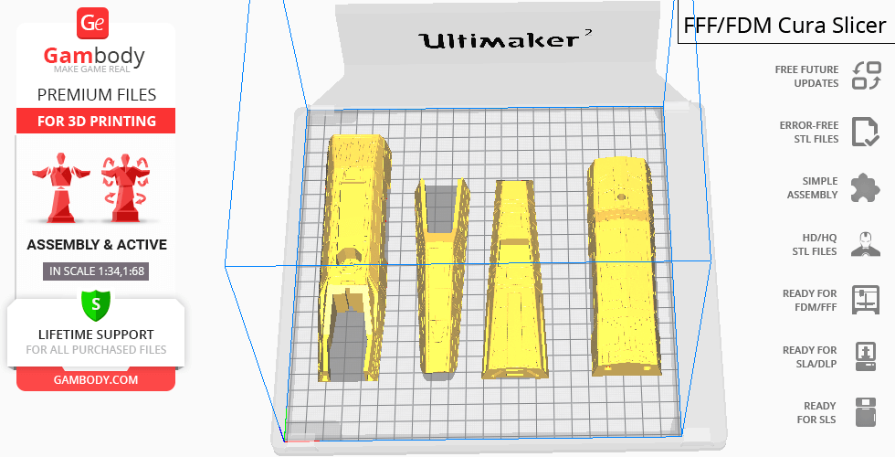 - 4 versions of files for this model for FFF/FDM, DLP/SLA and SLS printers;